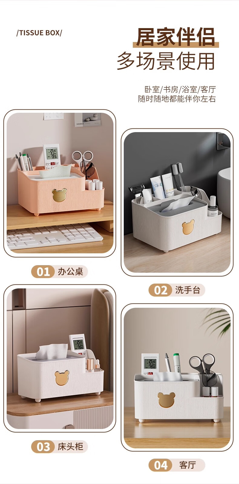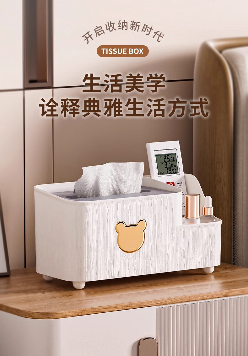 生活日用  > 日用杂货  > 日杂小件  >  慕亚/MUYA  >  慕亚(MUYA)纸巾盒客厅高档轻奢家用多功能桌面茶几遥控器收纳2025新款抽纸盒 W0902-小熊纸巾盒大号-皓月白/个