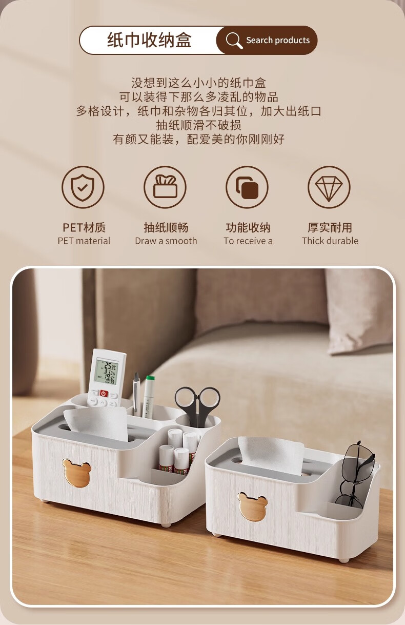 • 商品名称:慕亚(MUYA)纸巾盒客厅高档轻奢家用多功能桌面茶几遥控器收纳2025新款抽纸盒 W0902-小熊纸巾盒大号-皓月白/个