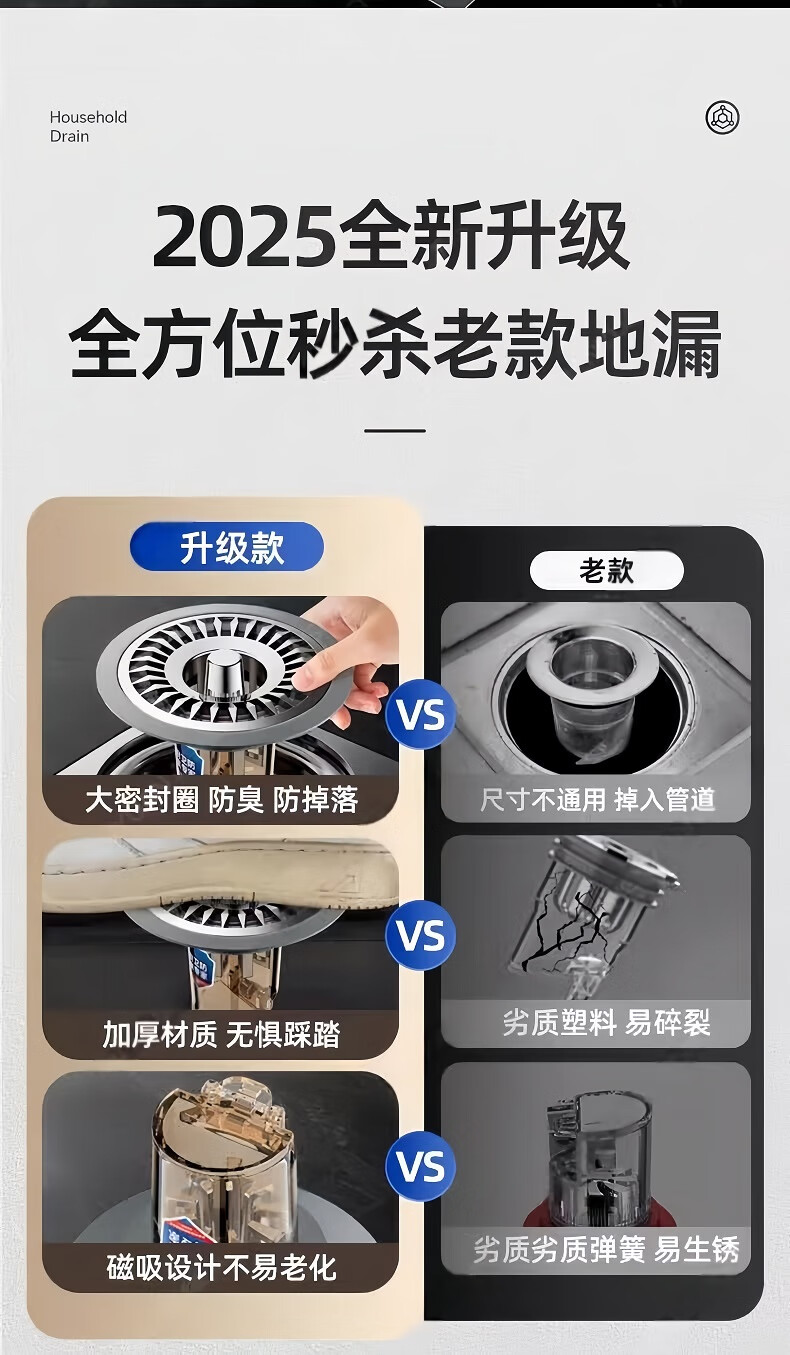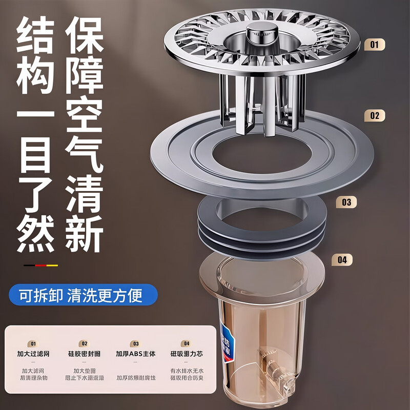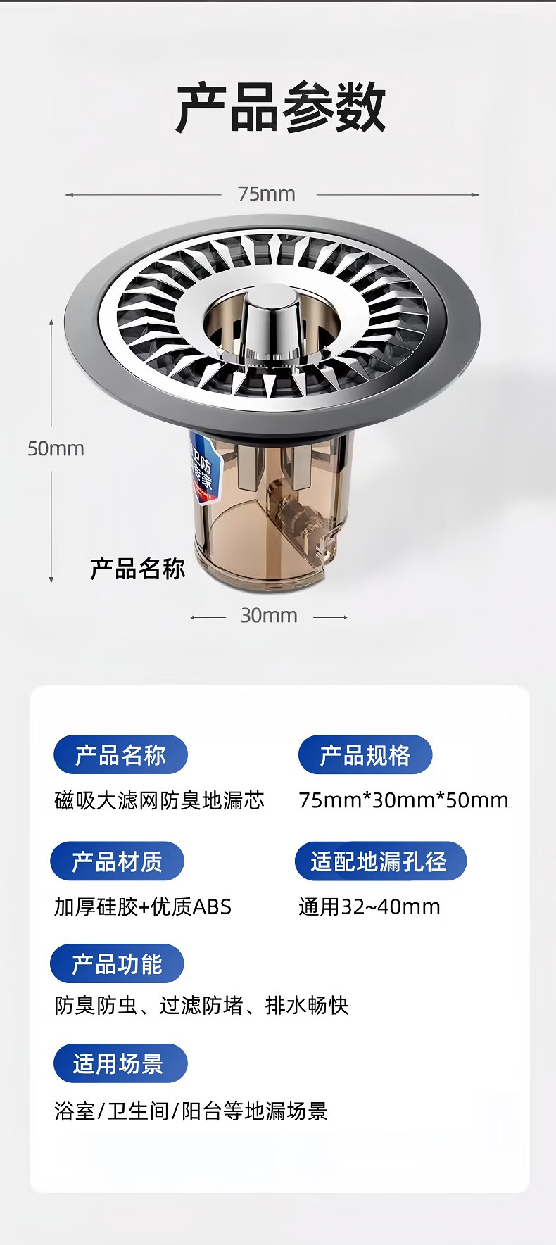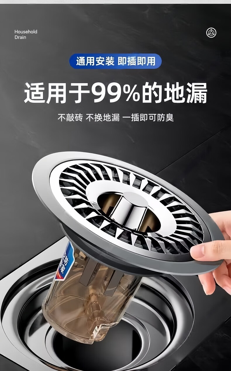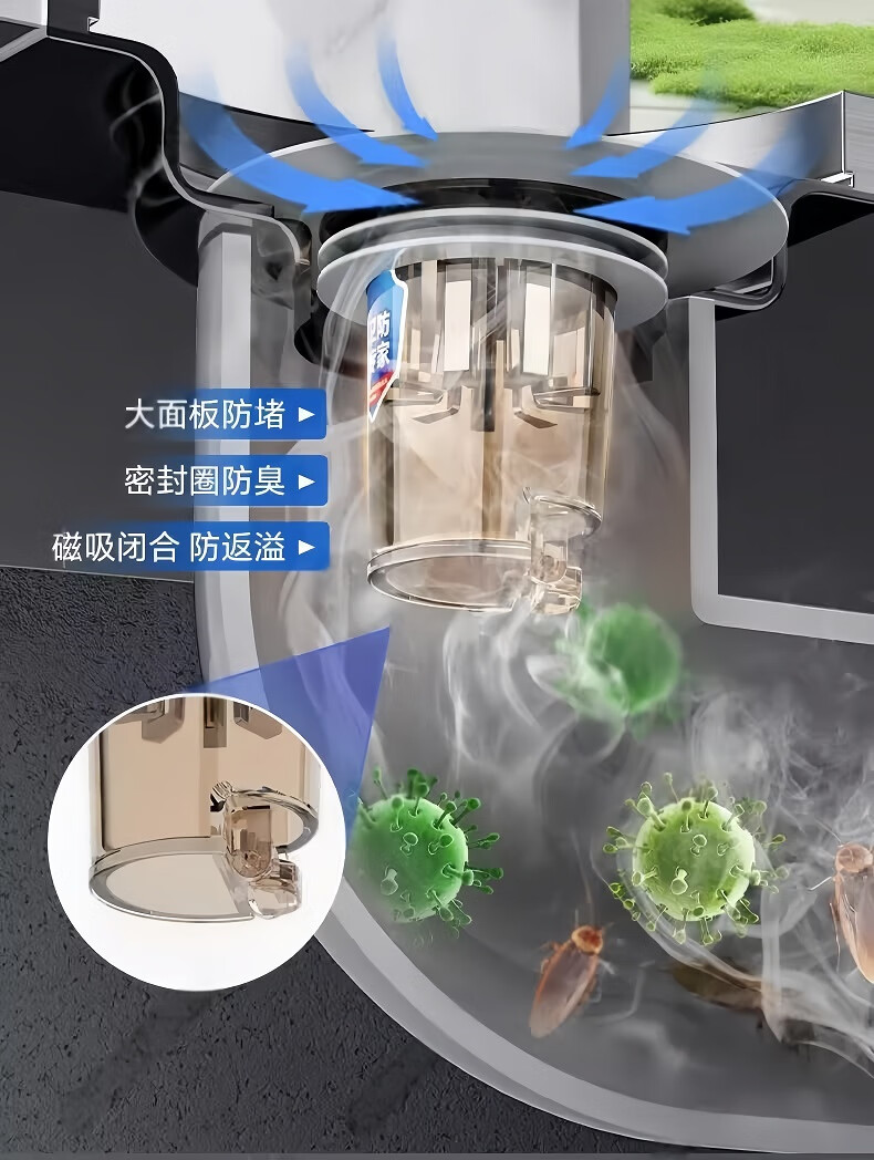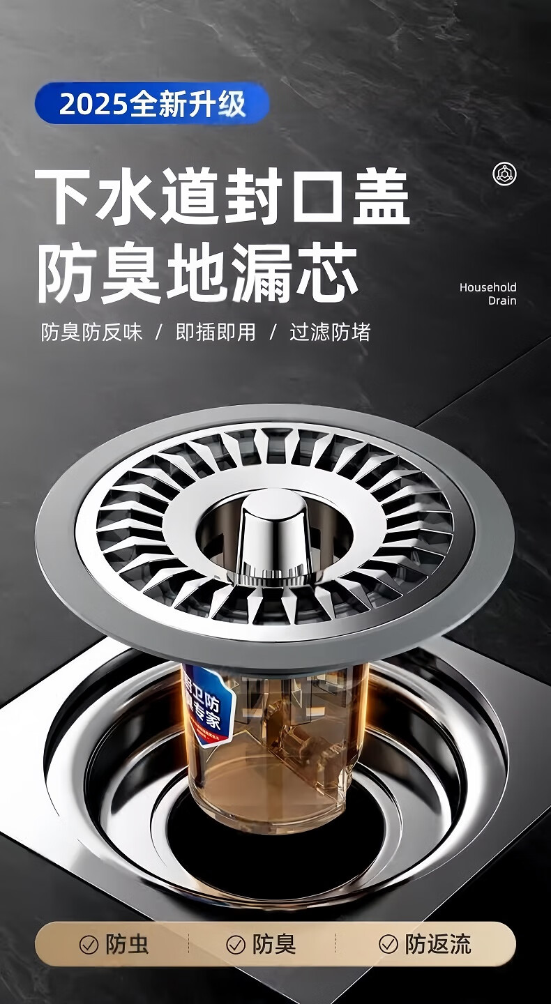 • 商品名称:佳立方地漏防臭器浴室卫生间下水道地漏盖通用全封闭盖防小飞虫反味神器 太阳花地漏芯/个