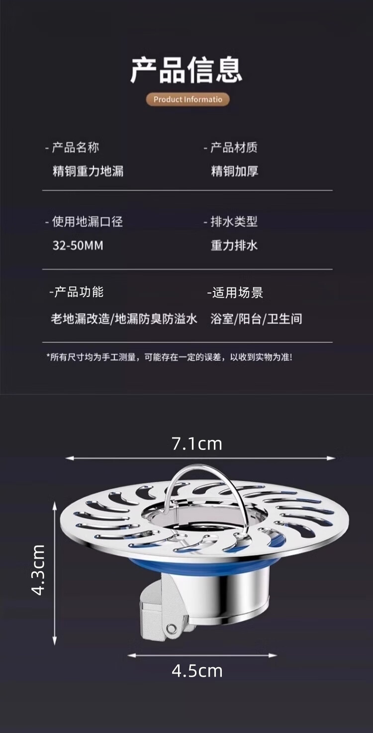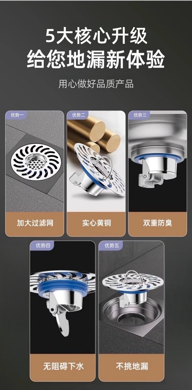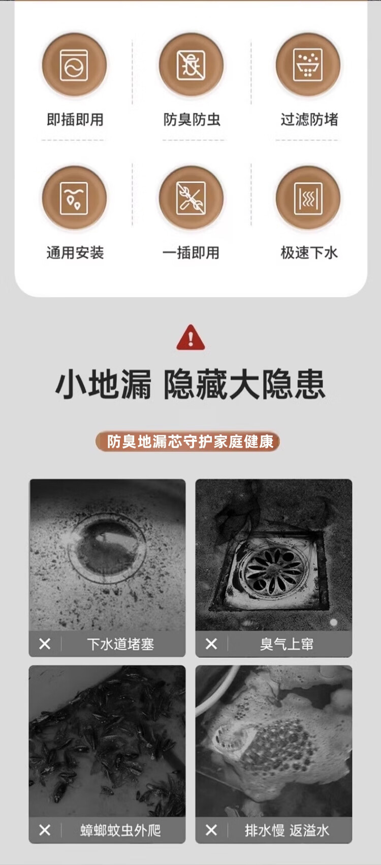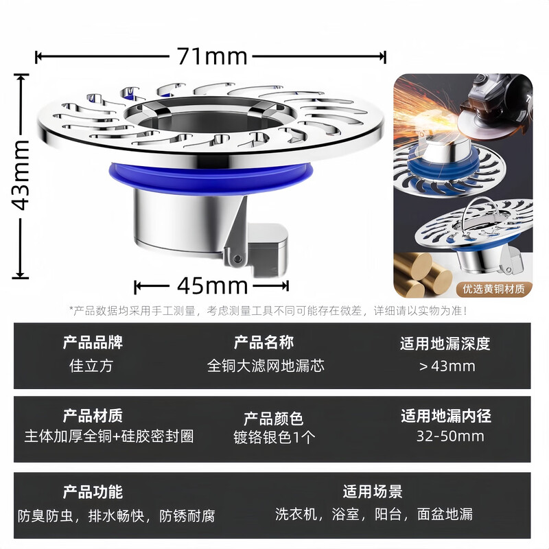 • 商品名称:佳立方防臭地漏芯全铜通用下水道防臭神器过滤防堵卫生间防反味密封塞 精铜地漏防臭芯/个