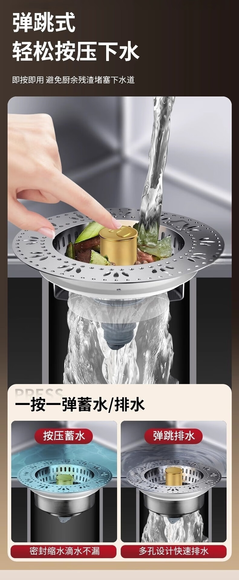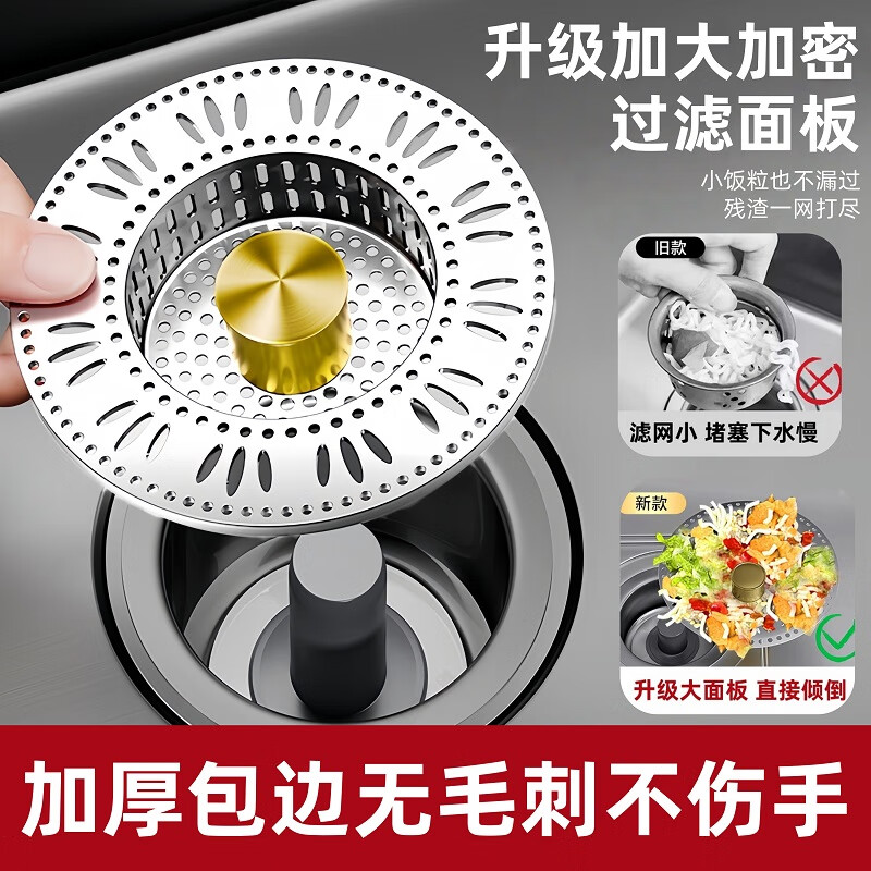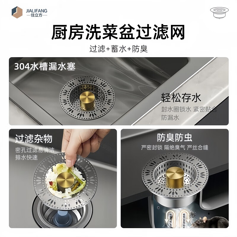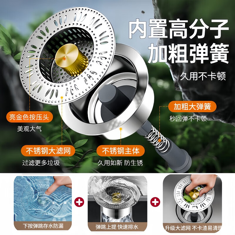 佳立方厨房水槽过滤网洗菜盆漏水塞水槽不锈钢弹跳芯下水器洗碗池防堵塞 佳立方不锈钢厨房水槽下水器/个