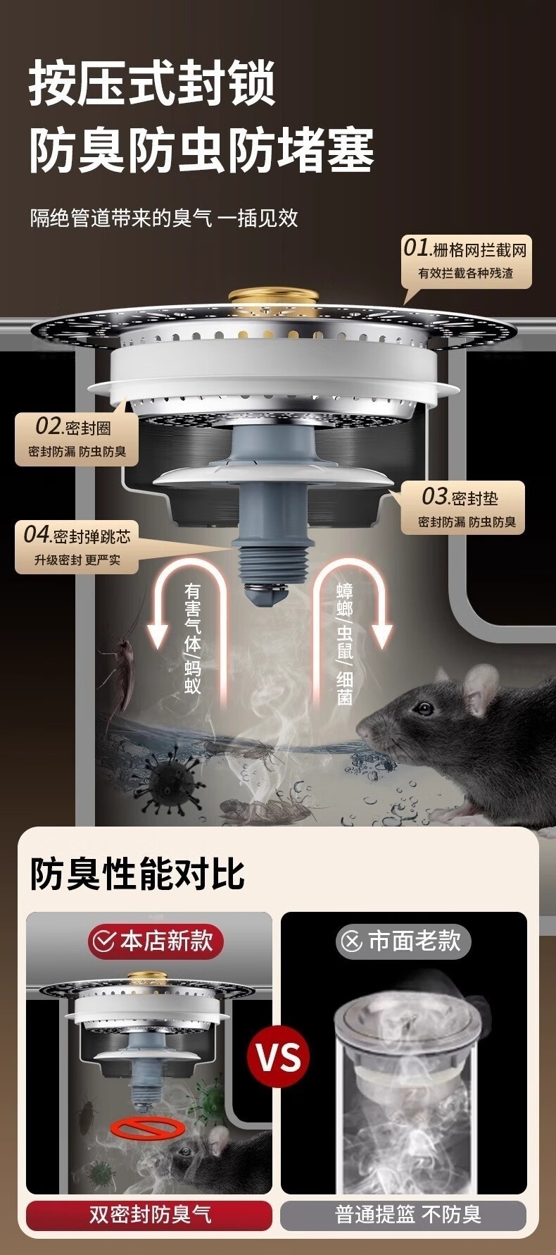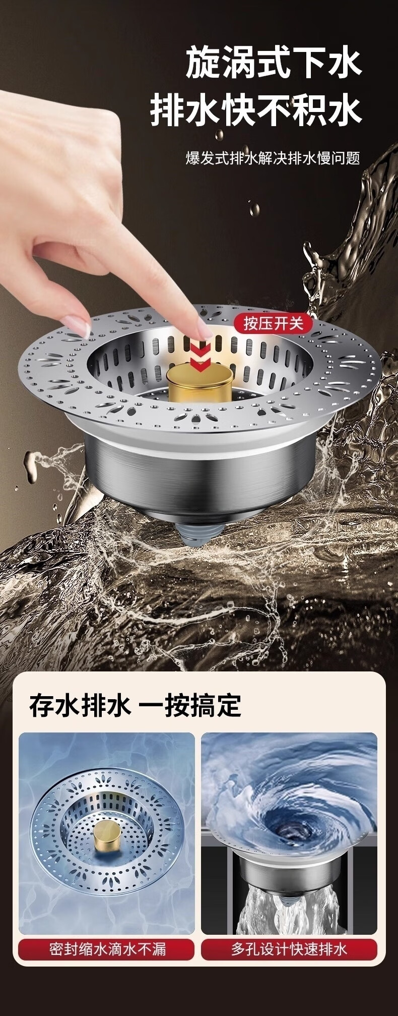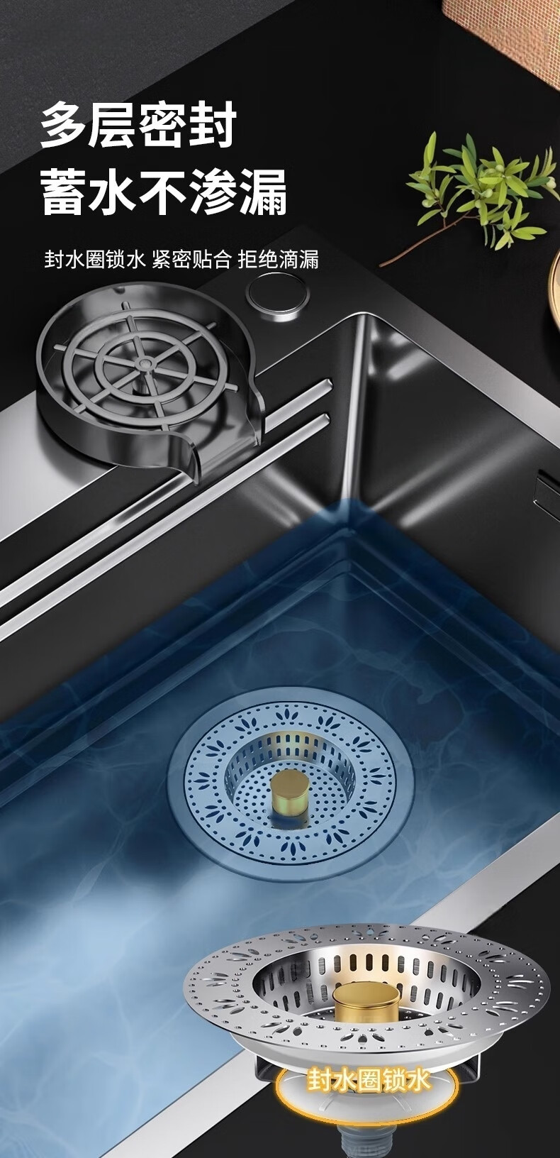 佳立方厨房水槽过滤网洗菜盆漏水塞水槽不锈钢弹跳芯下水器洗碗池防堵塞 佳立方不锈钢厨房水槽下水器/个