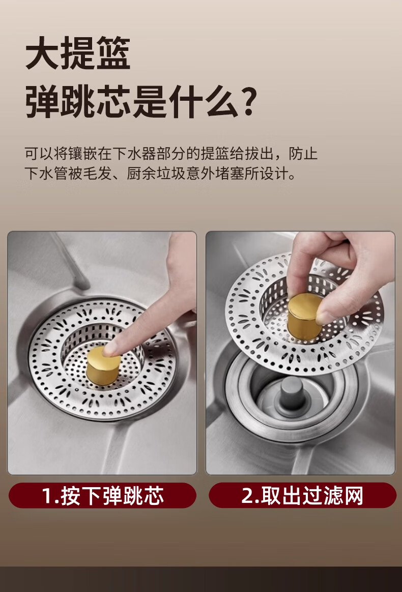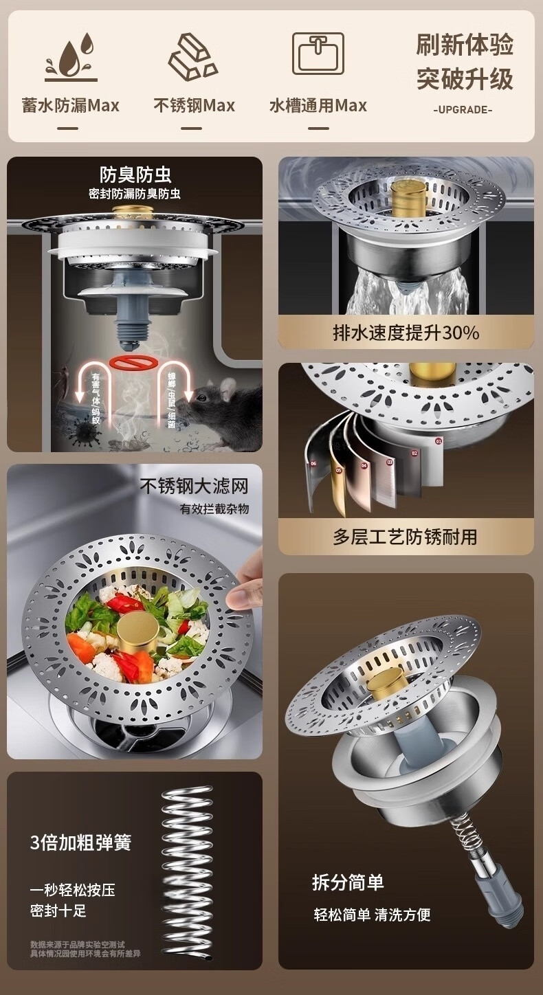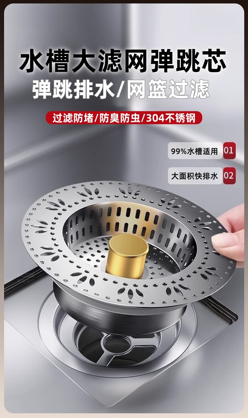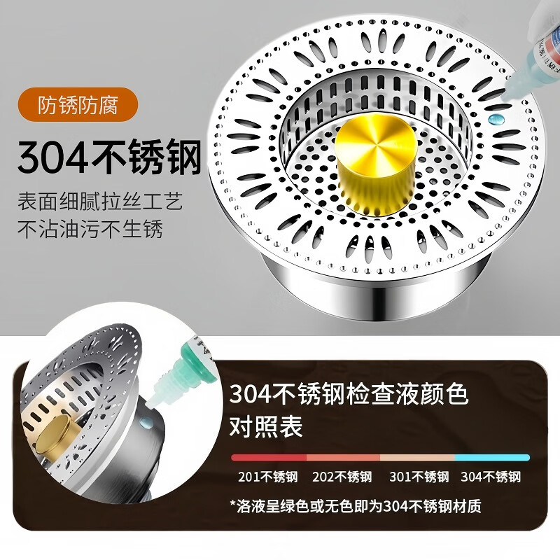• 商品名称:佳立方厨房水槽过滤网洗菜盆漏水塞水槽不锈钢弹跳芯下水器洗碗池防堵塞 佳立方不锈钢厨房水槽下水器/个