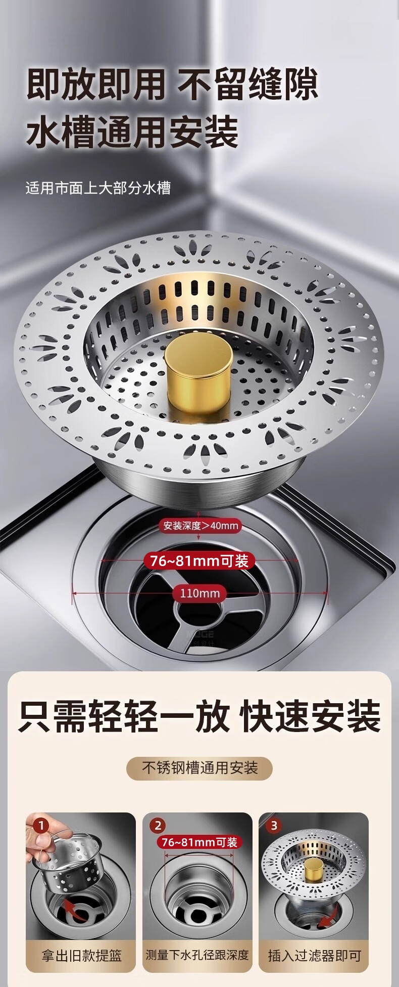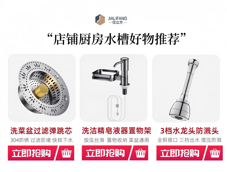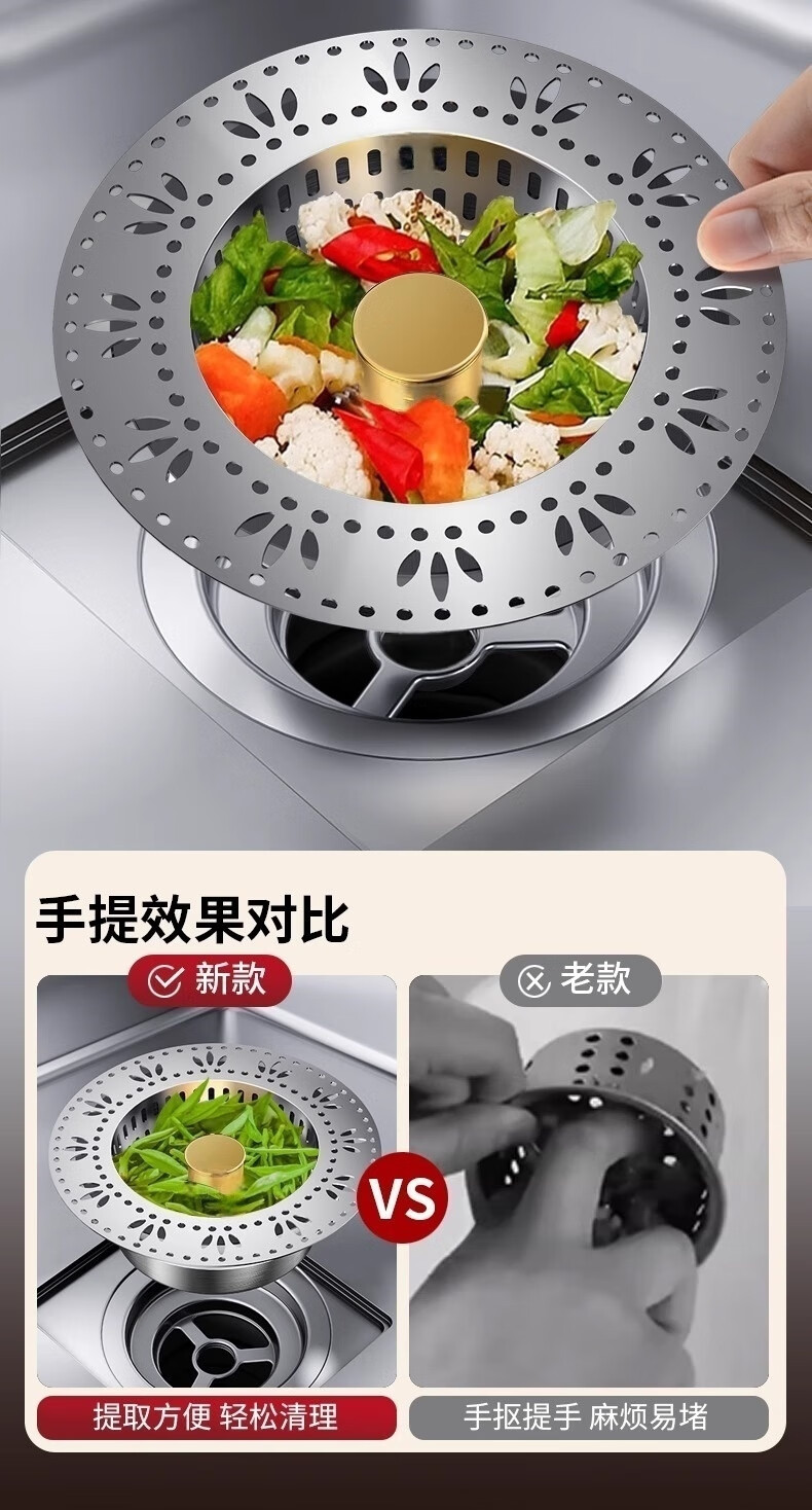 • 商品名称:佳立方厨房水槽过滤网洗菜盆漏水塞水槽不锈钢弹跳芯下水器洗碗池防堵塞 佳立方不锈钢厨房水槽下水器/个