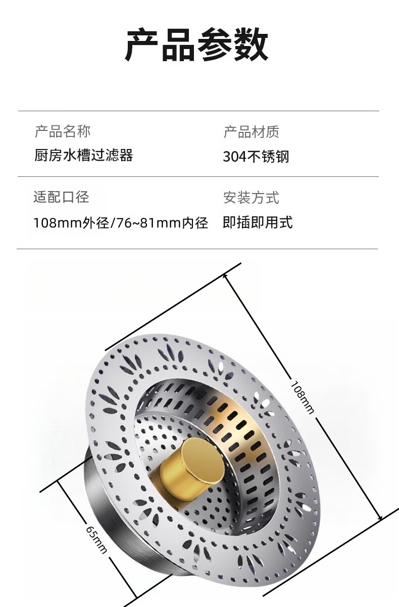 包装清单: 厨房水槽弹跳芯*1