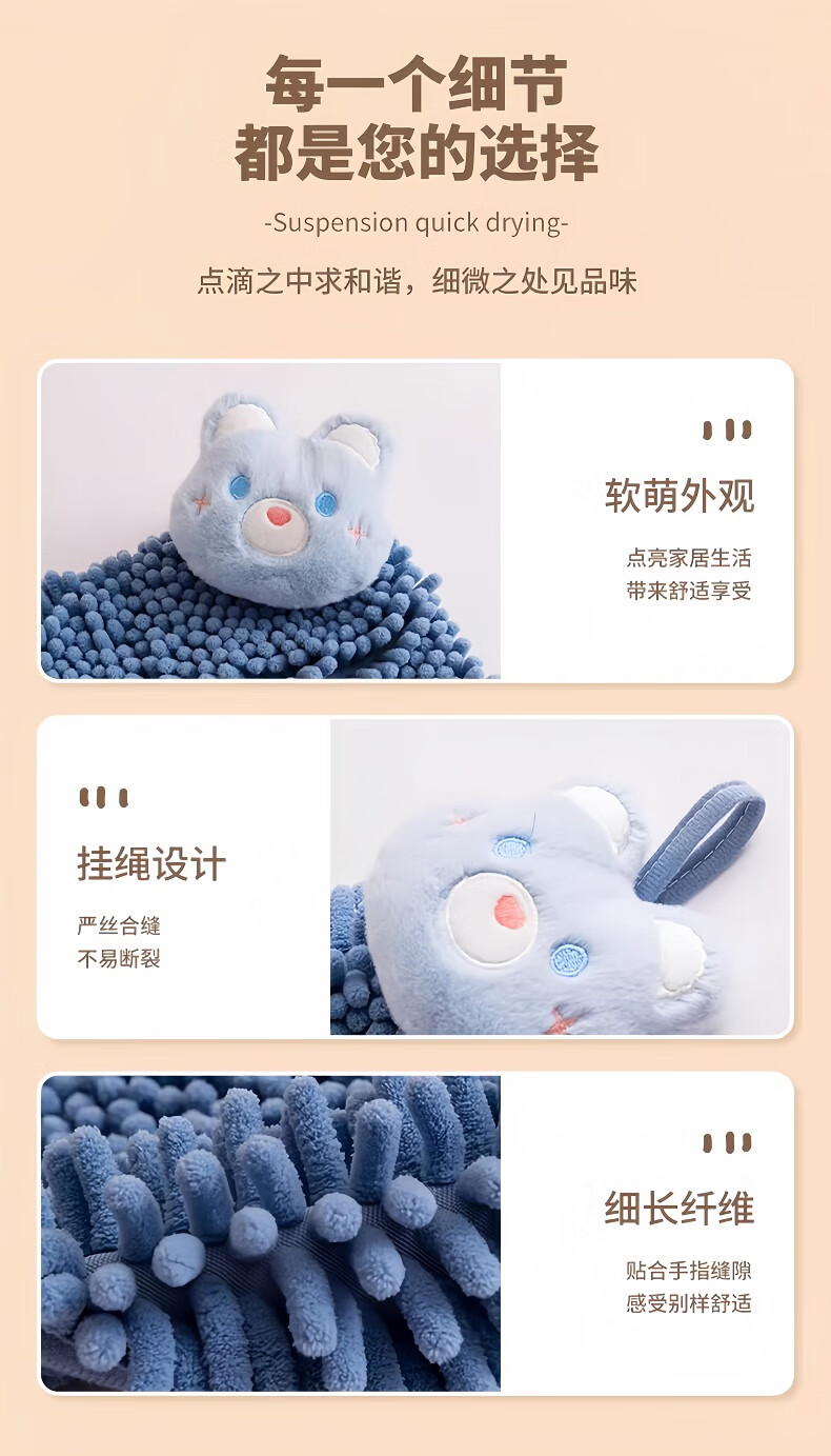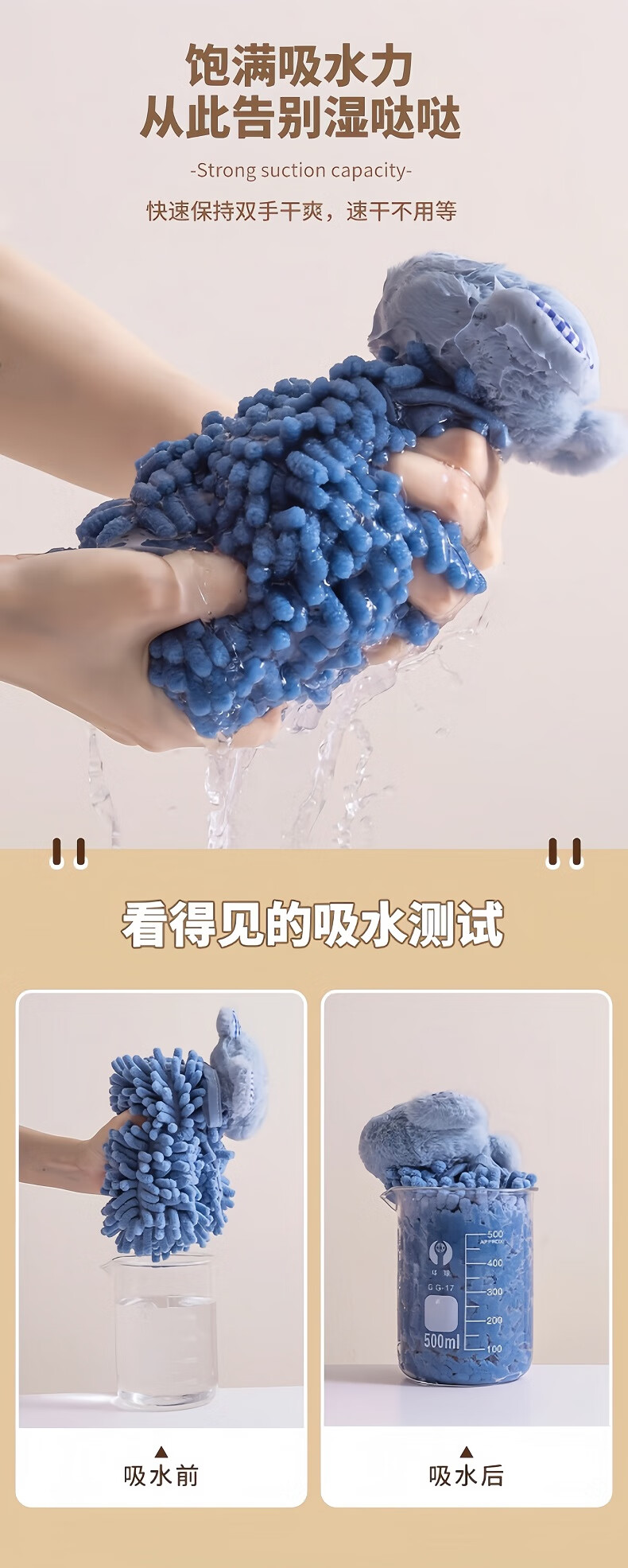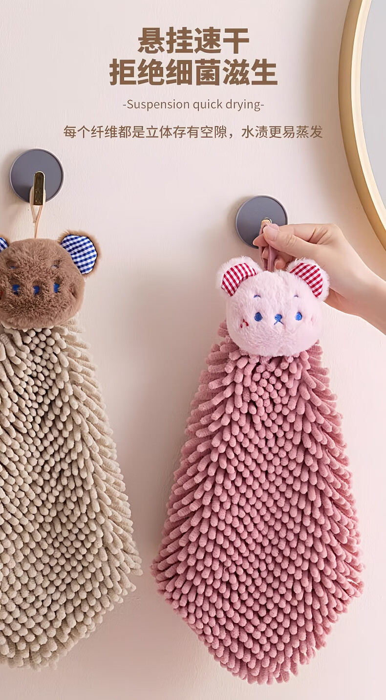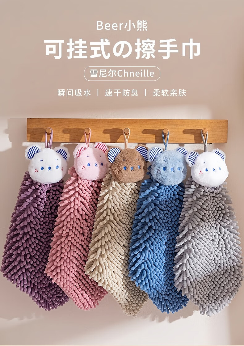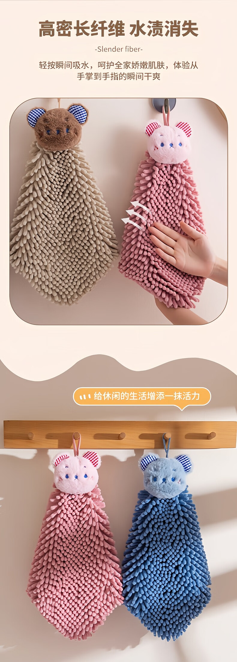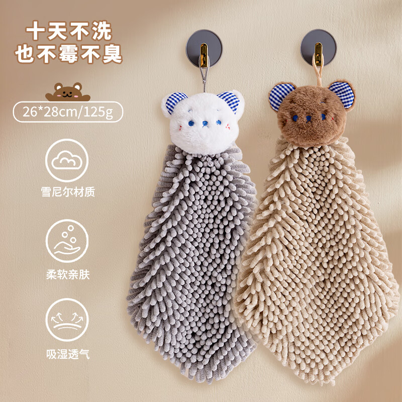 • 商品名称:佳立方雪尼尔擦手巾可挂式毛巾吸水速干厨房卫生间加厚擦手布可爱小熊 佳立方雪尼尔吸水速干擦手巾/个
