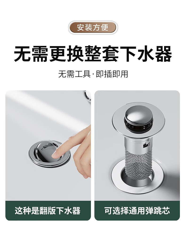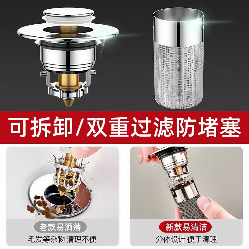 生活日用  > 日用杂货  > 日杂小件  >  佳立方  >  佳立方洗手盆漏水塞洗手池弹跳下水器面盆水池防臭塞按压式升级铜芯款 升级防臭弹跳芯/个