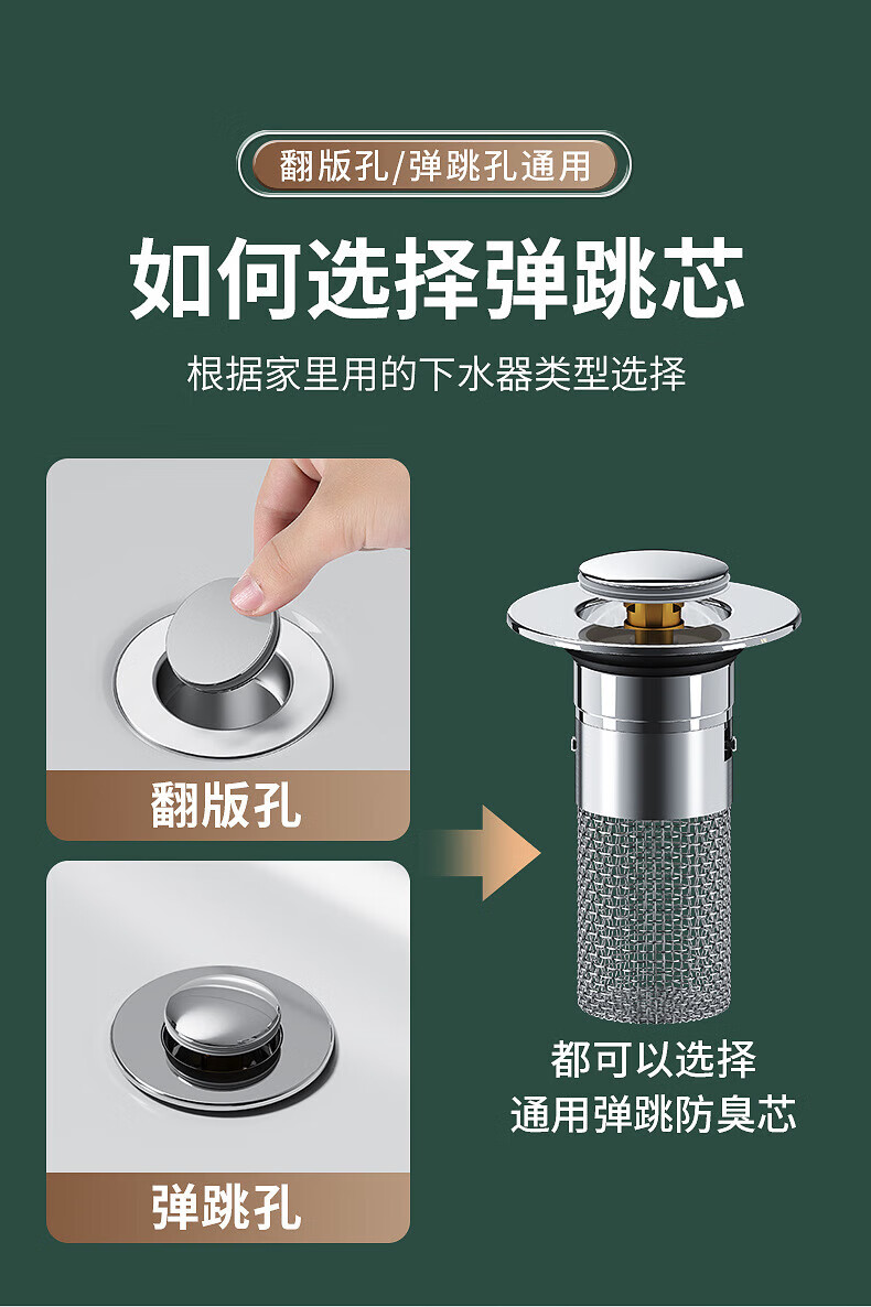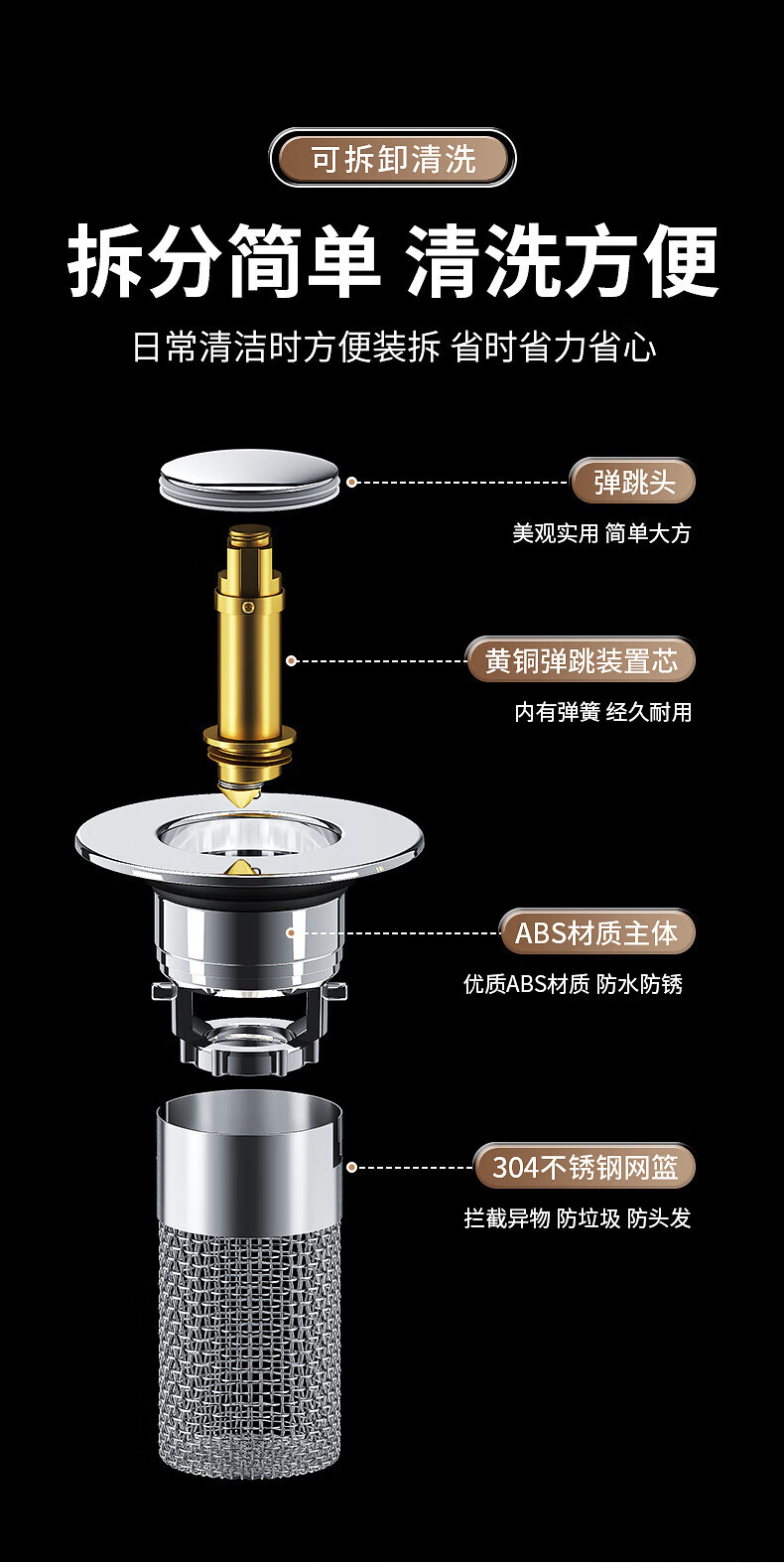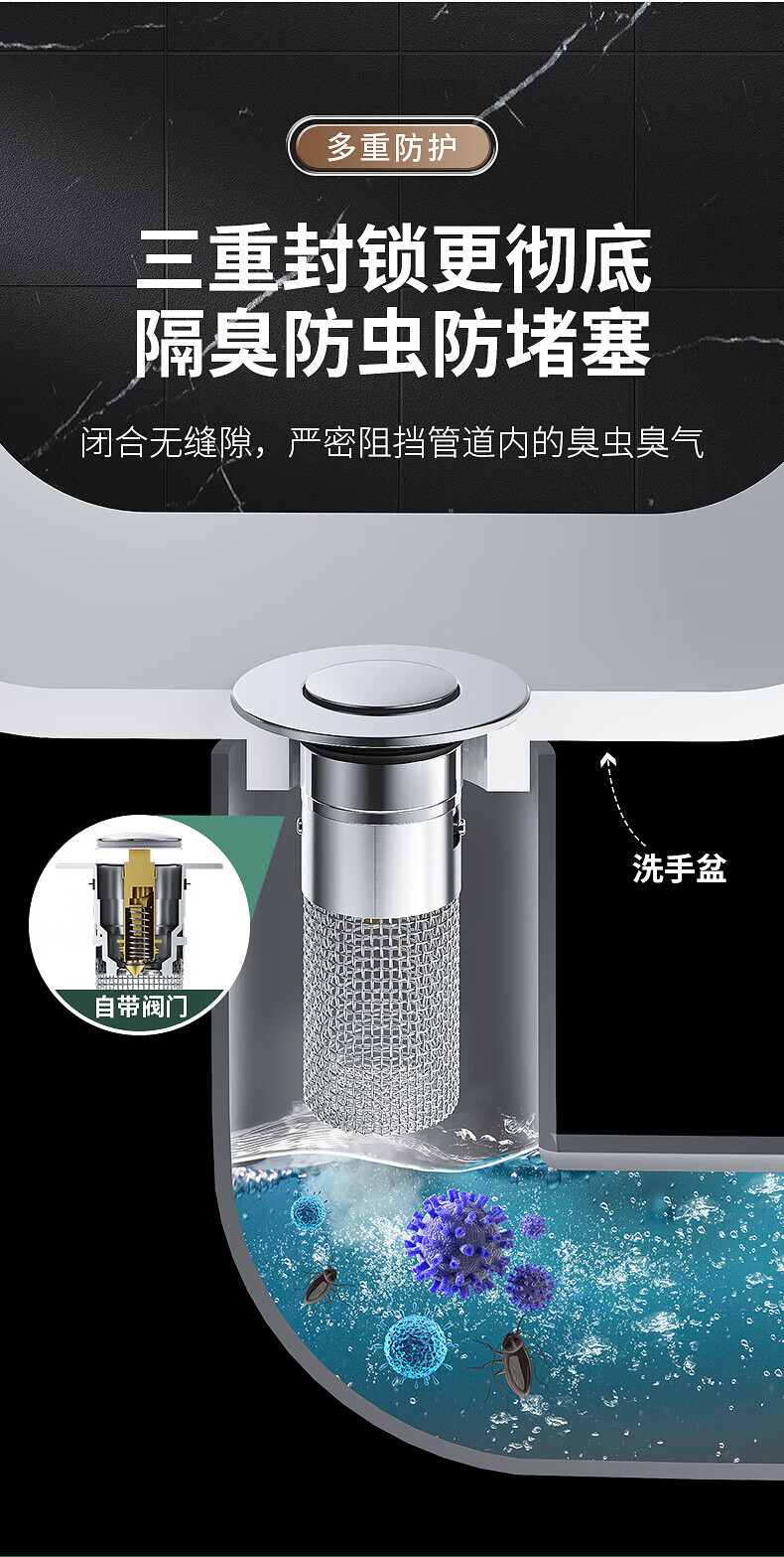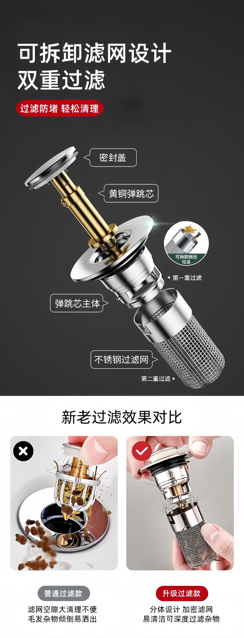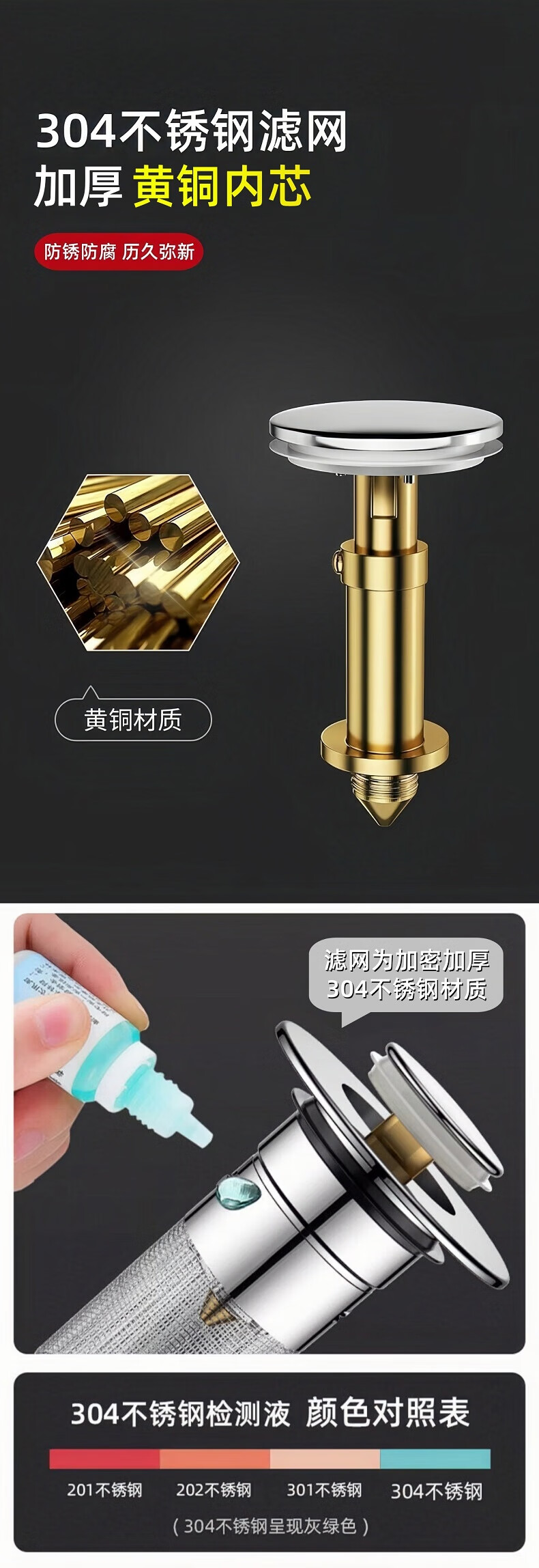 佳立方洗手盆漏水塞洗手池弹跳下水器面盆水池防臭塞按压式升级铜芯款 升级防臭弹跳芯/个