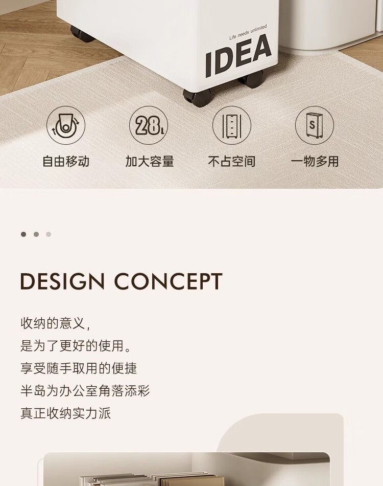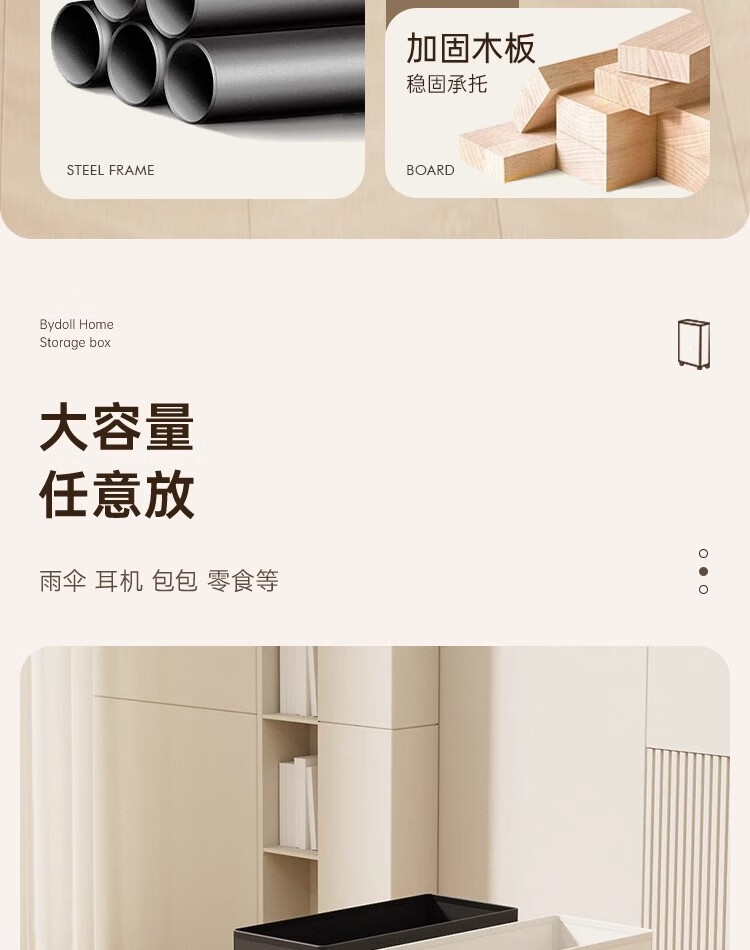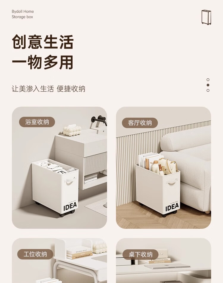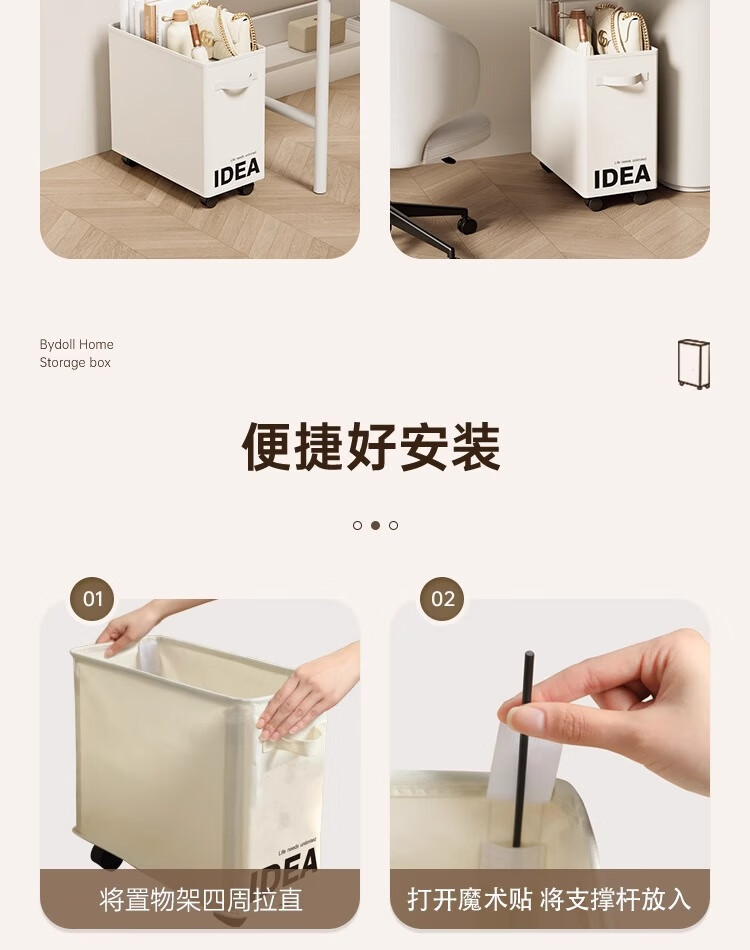 生活日用  > 日用杂货  > 日杂小件  >  bydoll  >  bydoll 办公室桌下置物架工位桌面神器放包筐好物带轮小推车书包收纳架 SNK24042/个