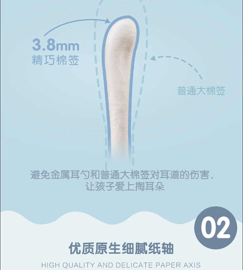 • 商品名称:茶花 儿童棉签掏耳朵纸轴棉头耳孔鼻孔清洁棉棒 G10006 180支/罐*3罐 G10006*3/个