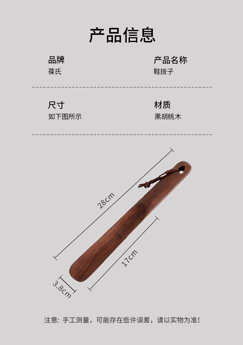 • 商品名称:葆氏胡桃木鞋拔子短柄实木鞋撑子提鞋器老人孕妇便携式穿鞋脱鞋神器 鞋拔/个
