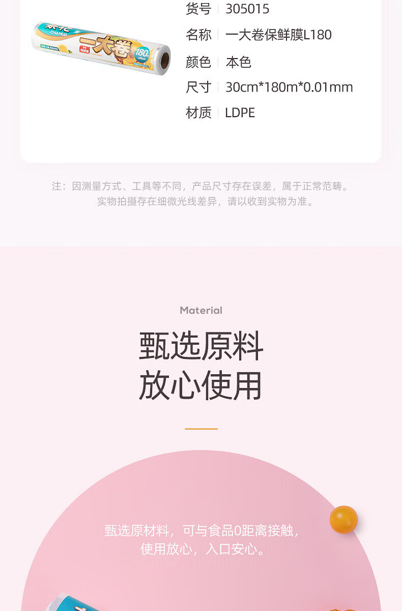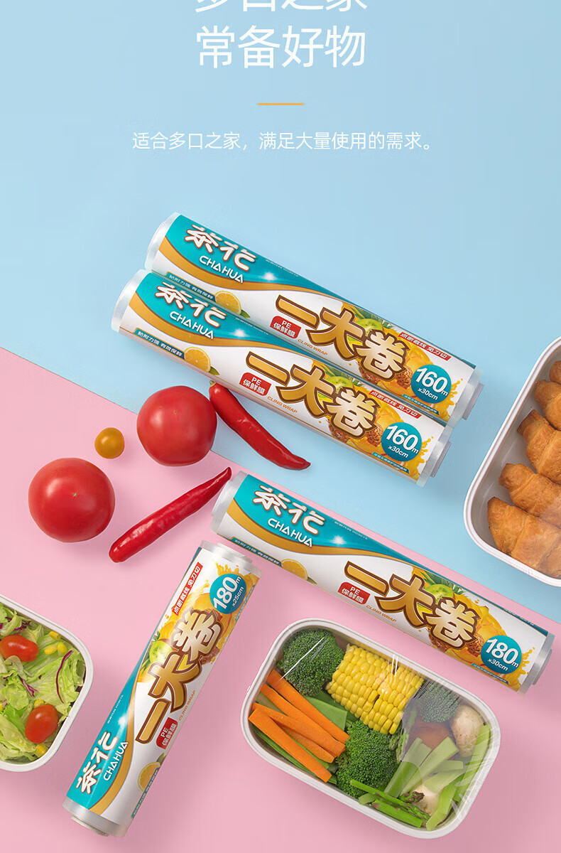 生活日用  > 日用杂货  > 日杂小件  >  茶花/CHAHUA  >  茶花保鲜膜经济装点断式食品级适用微波炉冰箱水果 305013 M180 305013/个