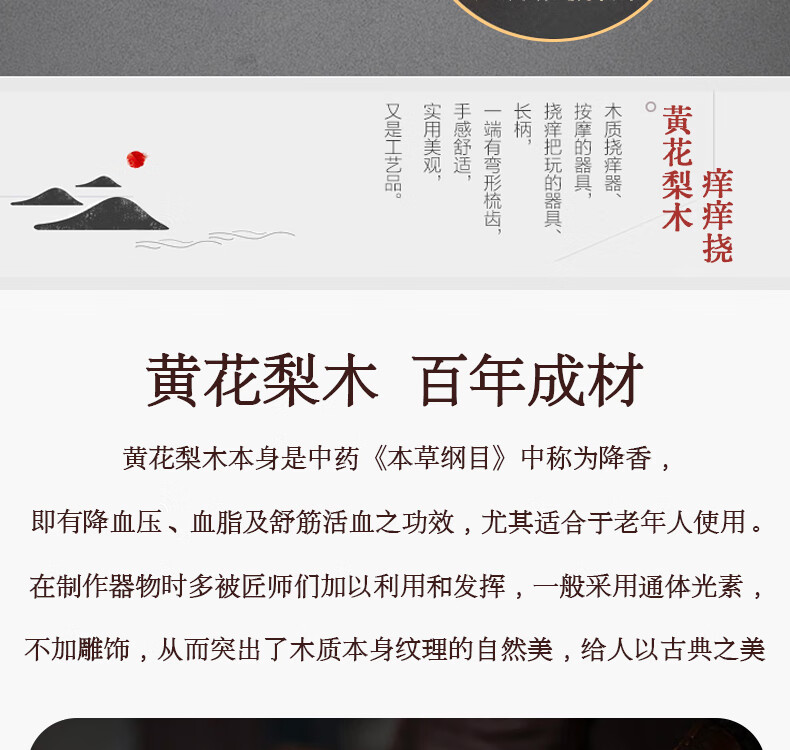 • 商品名称:秉优 黄花梨木痒痒挠 高端实木老头乐花梨木不求人高级抓痒抓后背神器 秉优8121425/个