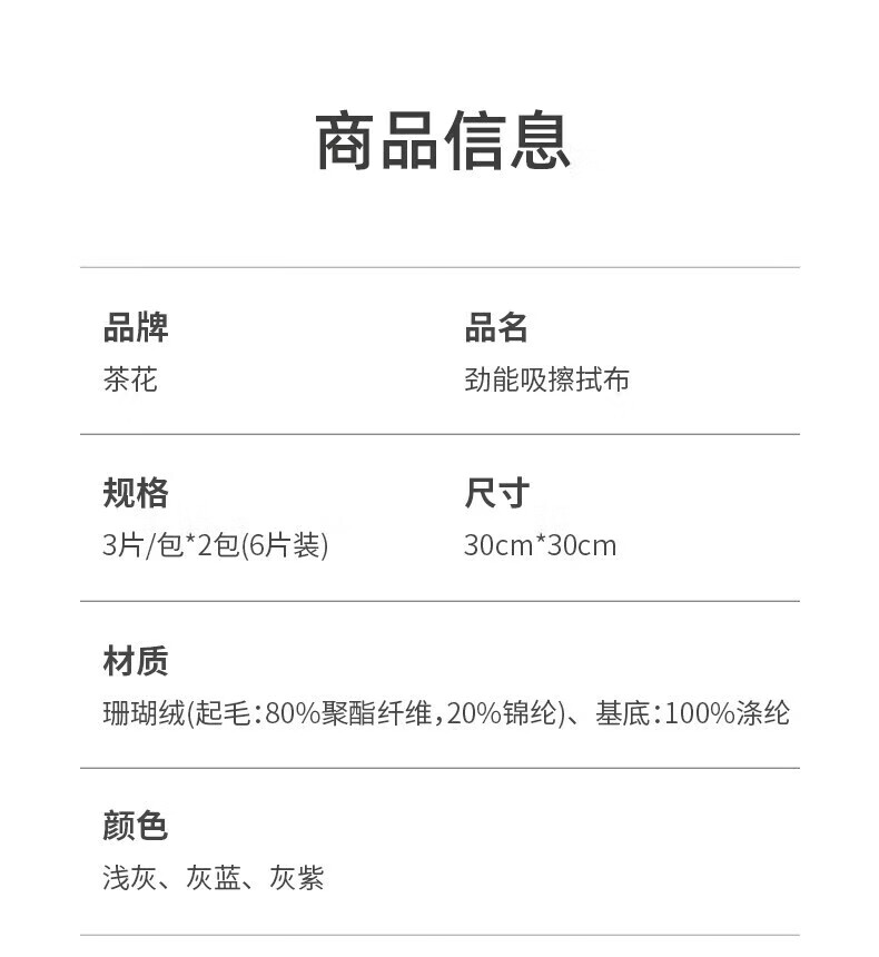 生活日用  > 日用杂货  > 日杂小件  >  茶花/CHAHUA  >  茶花劲能吸擦拭布3片装 厨房清洁抹布 220003 洁抹布/包