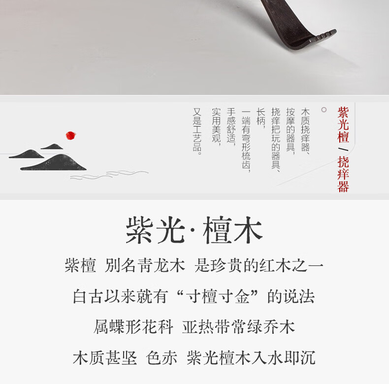 商品名称: 秉优 紫光檀木痒痒挠 高端实木不求人多功能抓后背抓痒神器耙子老头乐 秉优81442/个