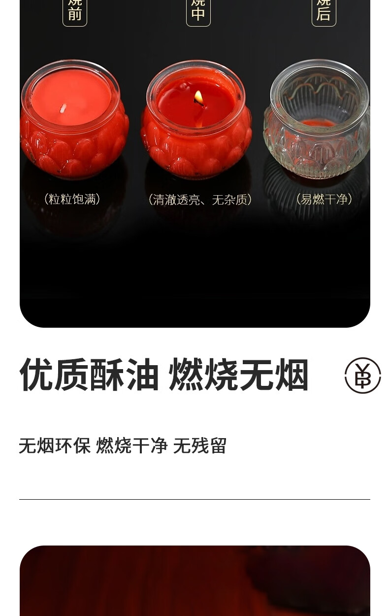 商品名称: 秉优24小时平口莲花灯6个装 酥油灯无烟供佛蜡烛佛前供灯圆莲花长明灯 蜡烛/套