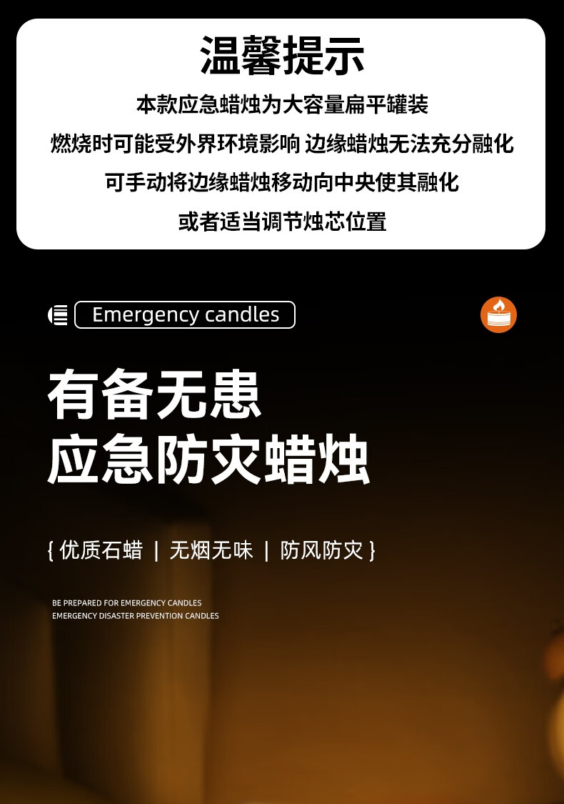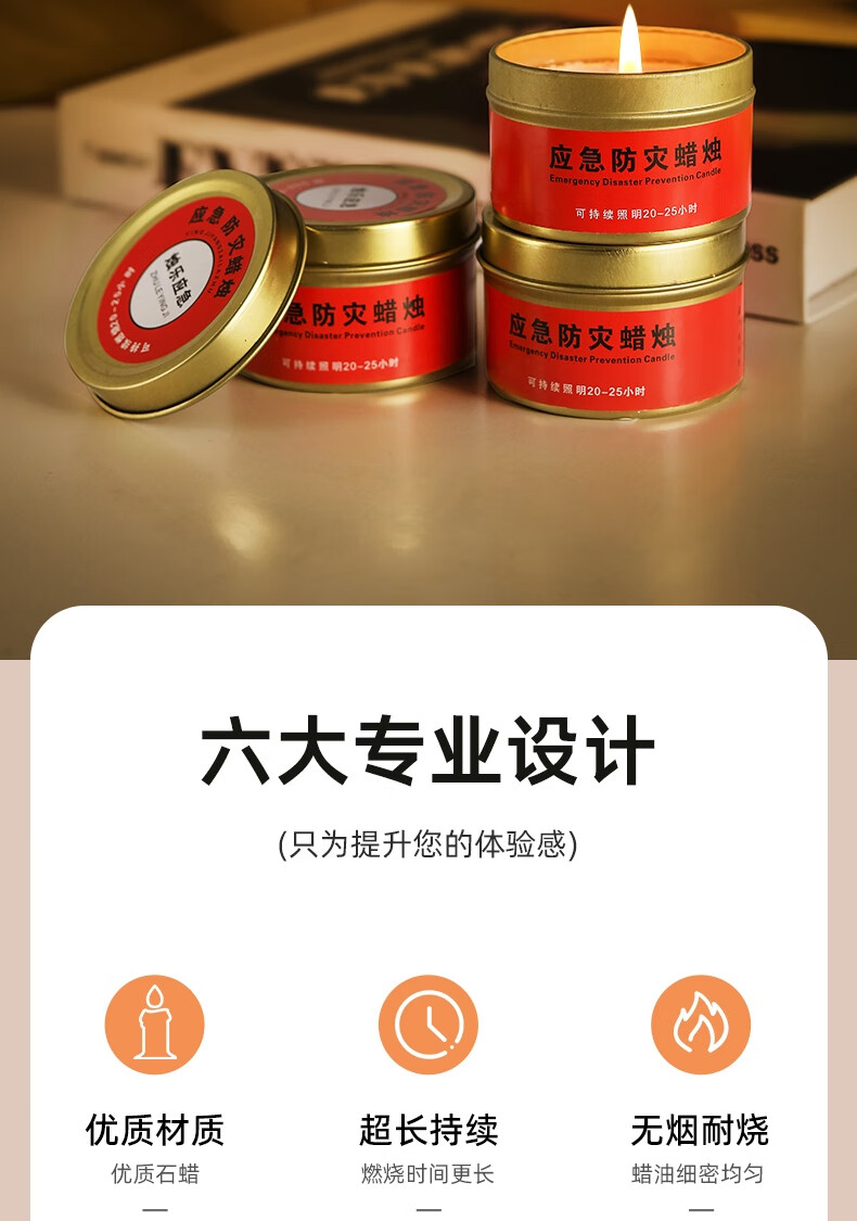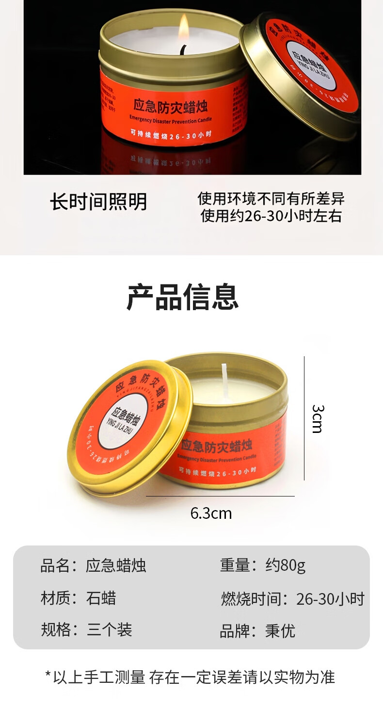 • 商品名称:秉优 应急蜡烛3个装 防灾无烟无味家用户外停电照明备用紧急生存防风 秉优0190421/套