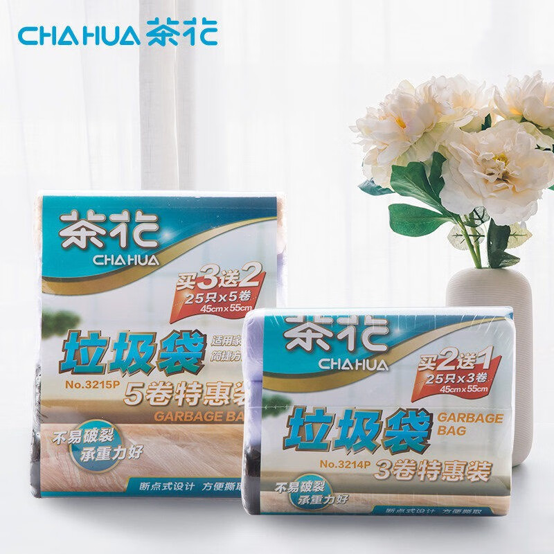 生活日用  > 日用杂货  > 日杂小件  >  茶花/CHAHUA  >  茶花垃圾袋加厚家用断点式塑料袋清洁袋45*55cm10卷共250只3215P 3215P/个