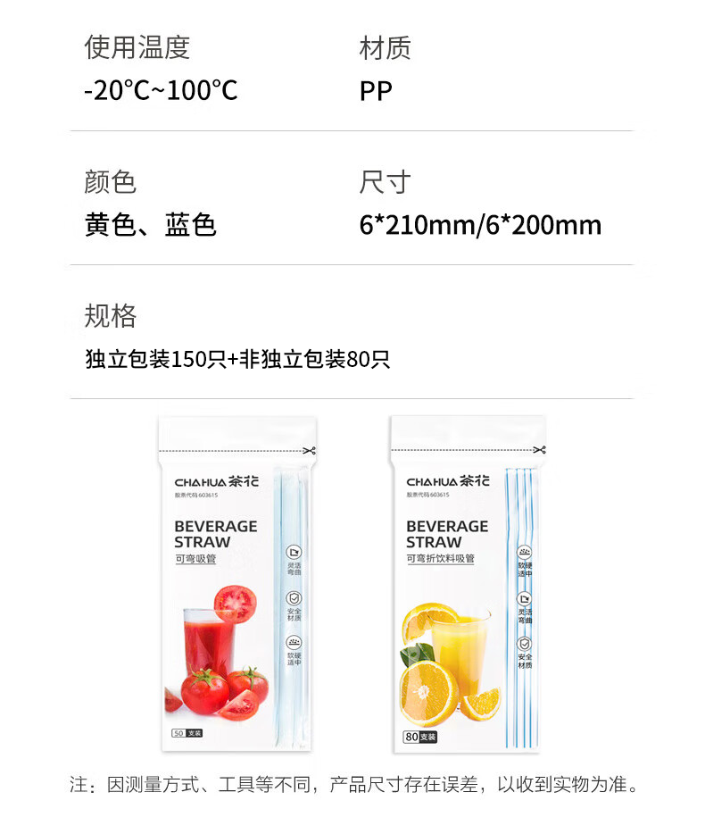 商品名称: 茶花 一次性吸管非独立包装80支*1包+独立包装50支*3包 3602+G11001*3 一次性吸管4包230支/包