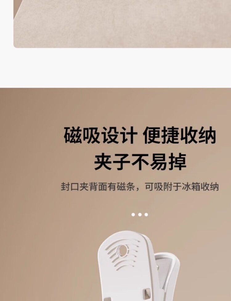 • 商品名称:佳立方整理师推荐磁吸封口夹冰箱贴食品封口零食密封家用厨房调料封口夹 磁吸封口夹/个