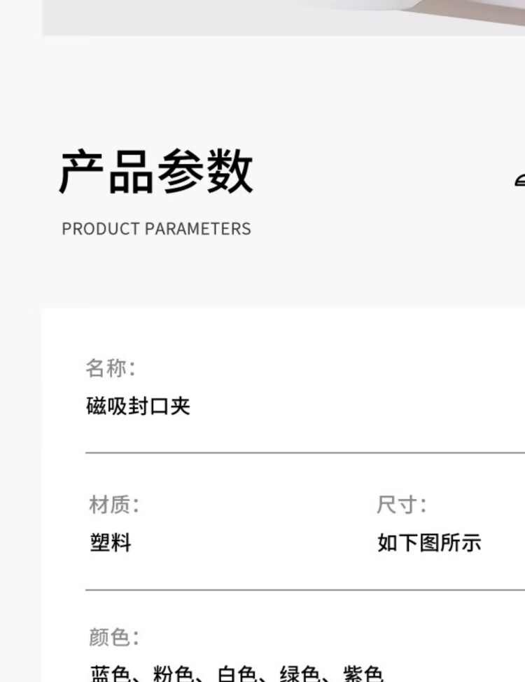 商品名称: 佳立方整理师推荐磁吸封口夹冰箱贴食品封口零食密封家用厨房调料封口夹 磁吸封口夹/个