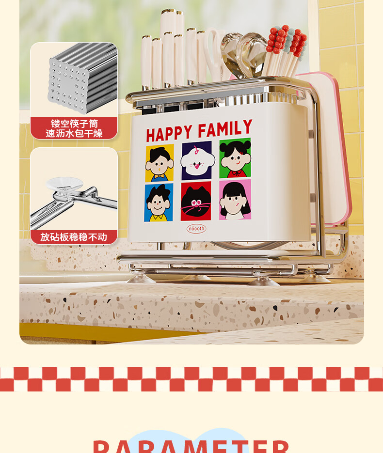 生活日用  > 日用杂货  > 日杂小件  >  诺室  >  诺室新款厨房刀架置物架多功能筷子筒菜刀架砧板一体刀具收纳架 G253068118030/个