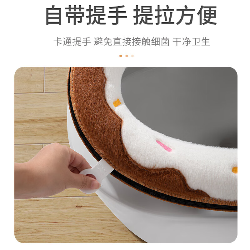 慕亚(MUYA)加厚马桶垫秋冬家用拉链式防水亲肤保暖带提手甜甜圈可水洗马桶套 甜甜圈马桶垫拉链款-黄色/个