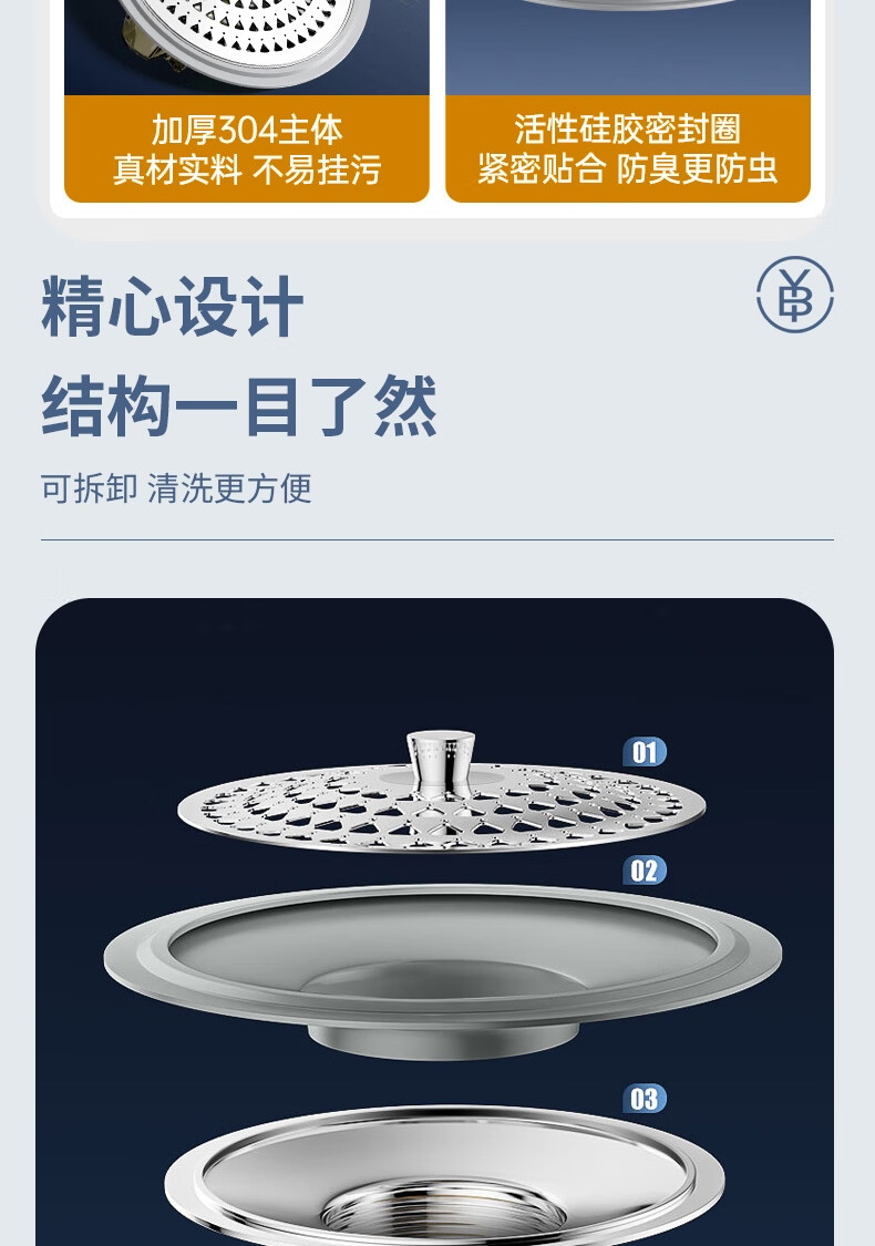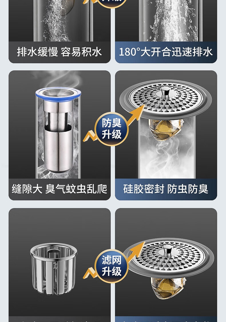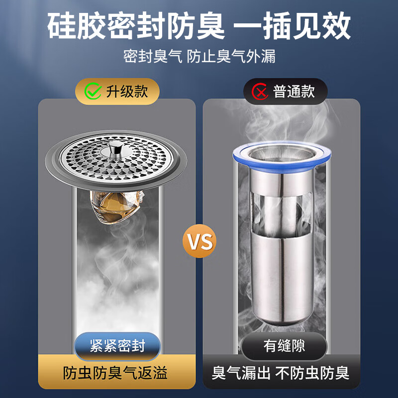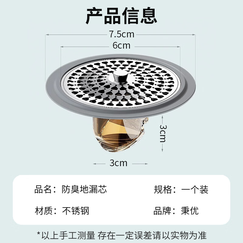生活日用  > 日用杂货  > 日杂小件  >  秉优  >  秉优防臭地漏芯卫生间通用防虫毛发过滤网下水管道防返臭味神器封口盖 秉优9121421/个