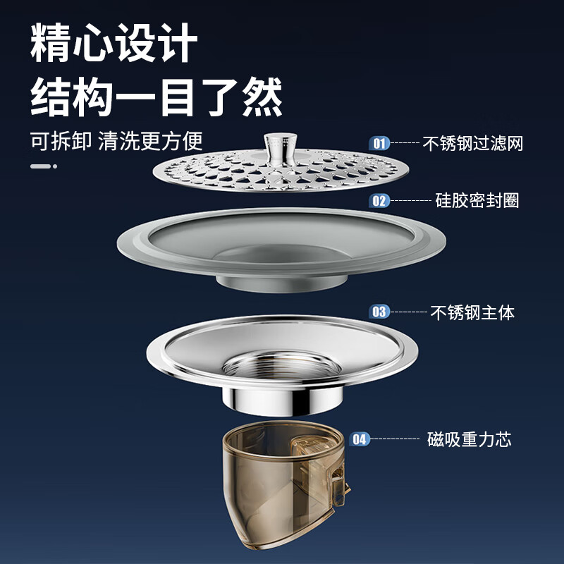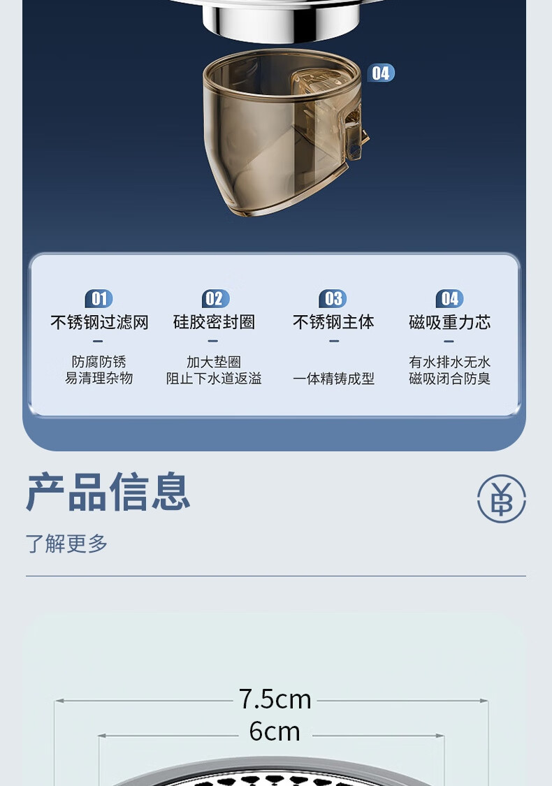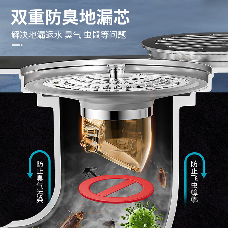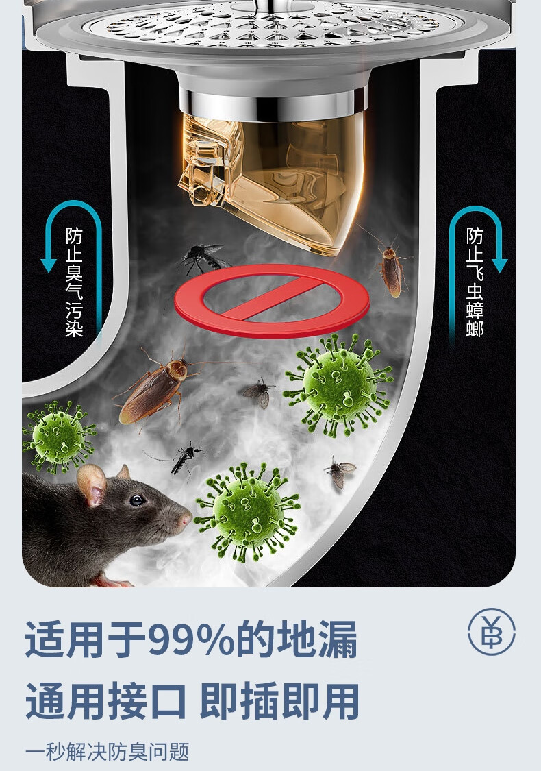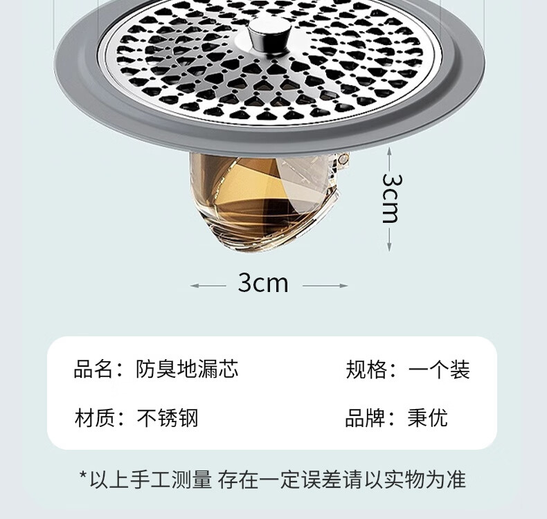 • 商品名称:秉优防臭地漏芯卫生间通用防虫毛发过滤网下水管道防返臭味神器封口盖 秉优9121421/个