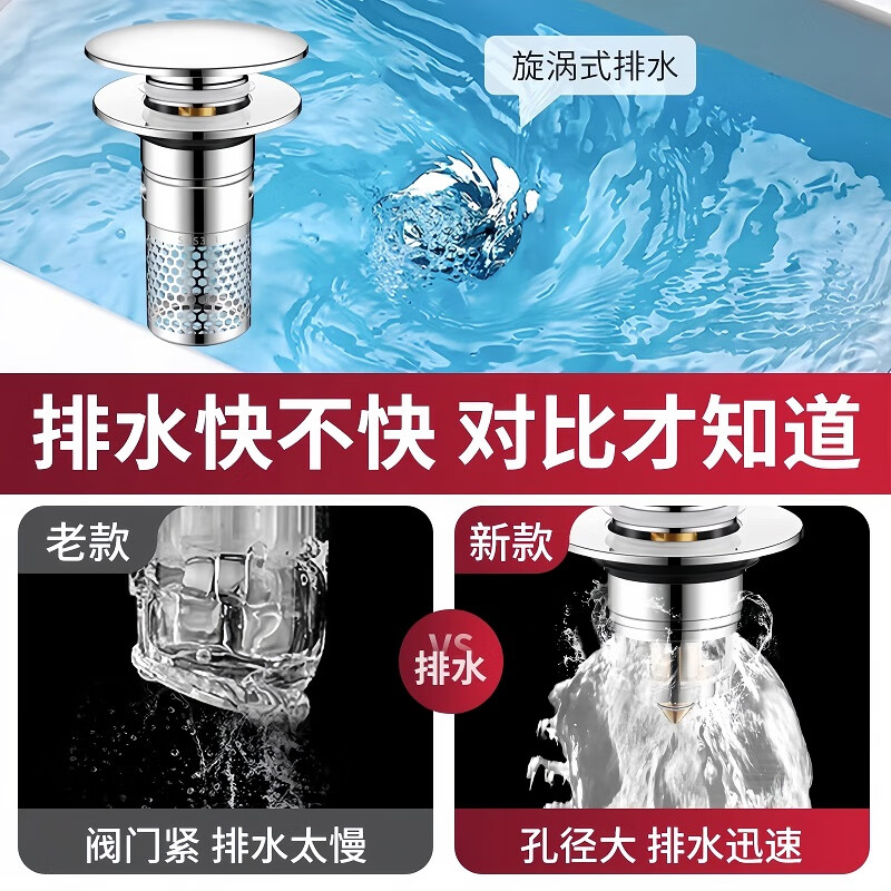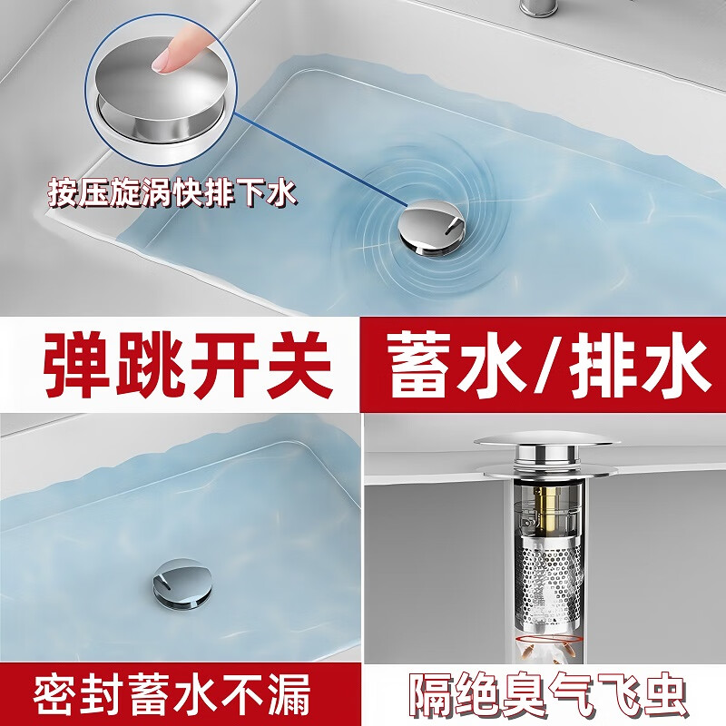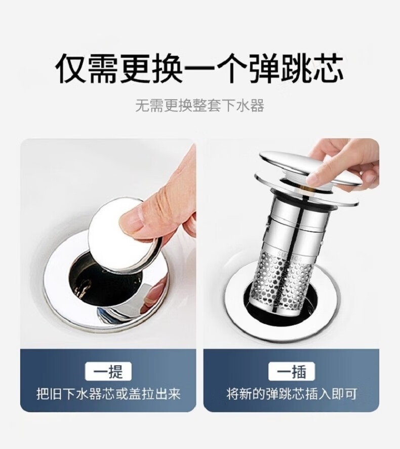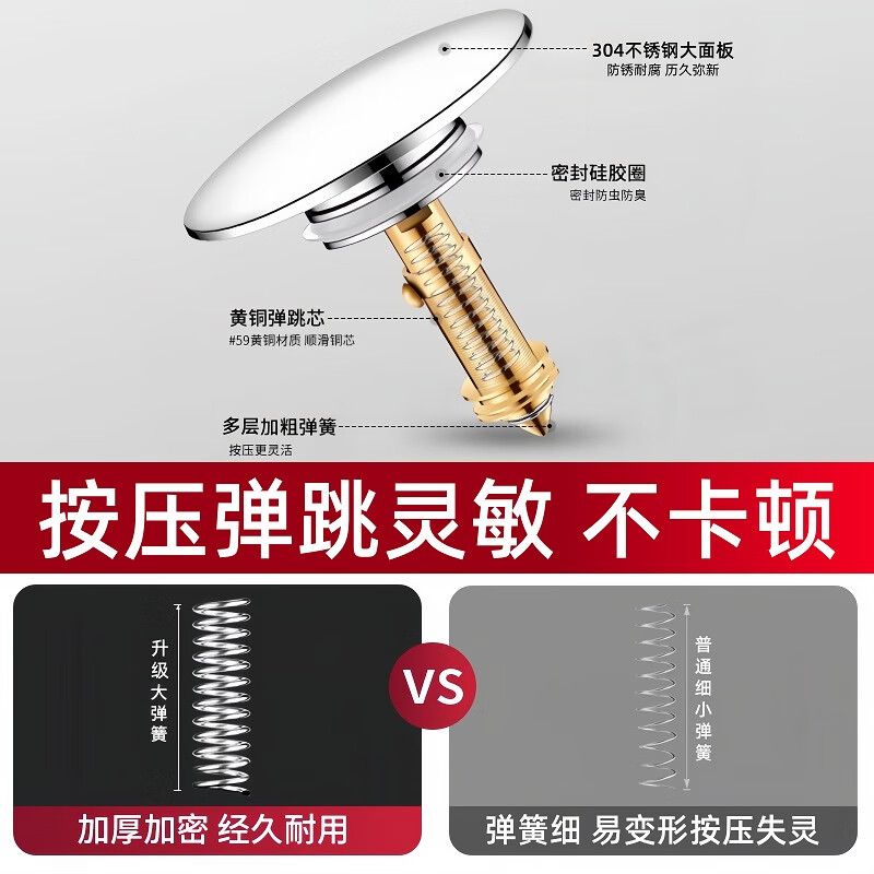 佳立方洗手盆漏水塞防臭弹跳下水器铜芯卫生间不锈钢过滤网防堵防虫水池 面盆弹跳芯下水器/个