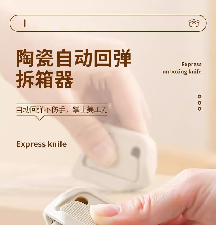 • 商品名称:佳立方便携快递刀自动回弹拆箱器陶瓷磁吸防粘安全刀拆快递包裹开箱专用 陶瓷自动回弹拆箱器/个
