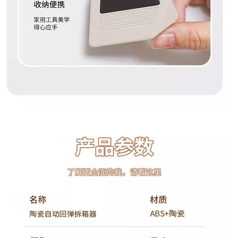 包装清单: 陶瓷自动回弹拆箱器*1