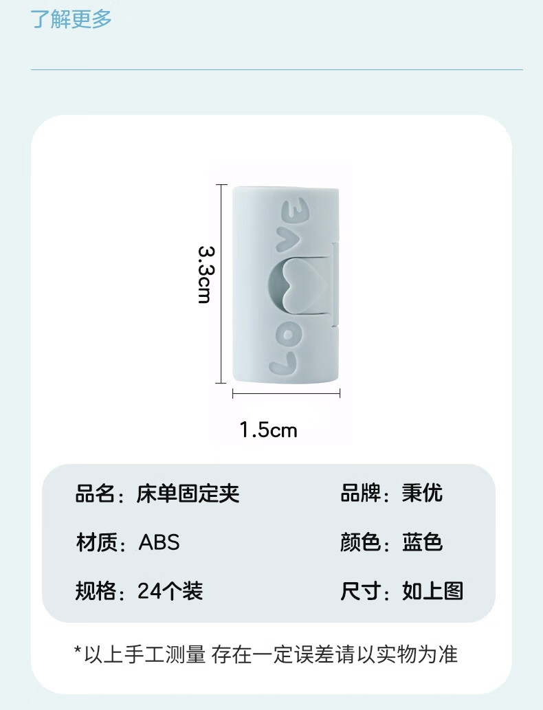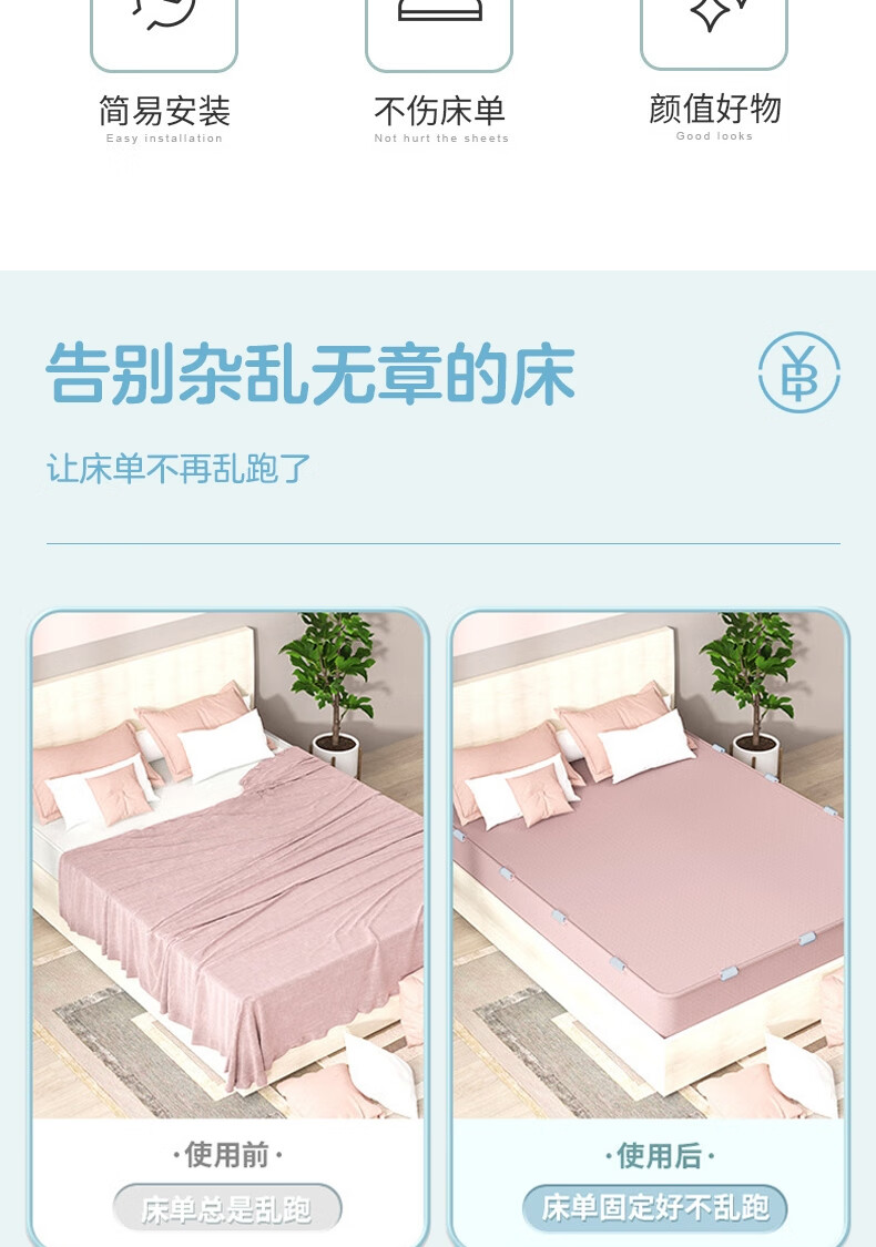 生活日用  > 日用杂货  > 日杂小件  >  秉优  >  秉优 床单固定器24个装 防跑神器防滑夹子无针床罩夹被子被单被罩扣 秉优81214211/套