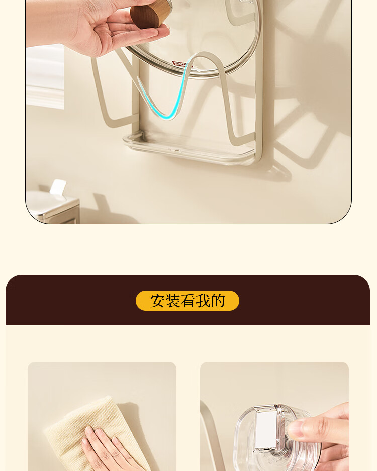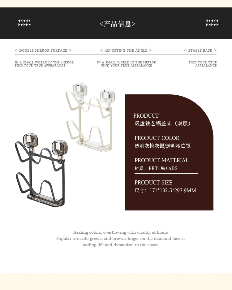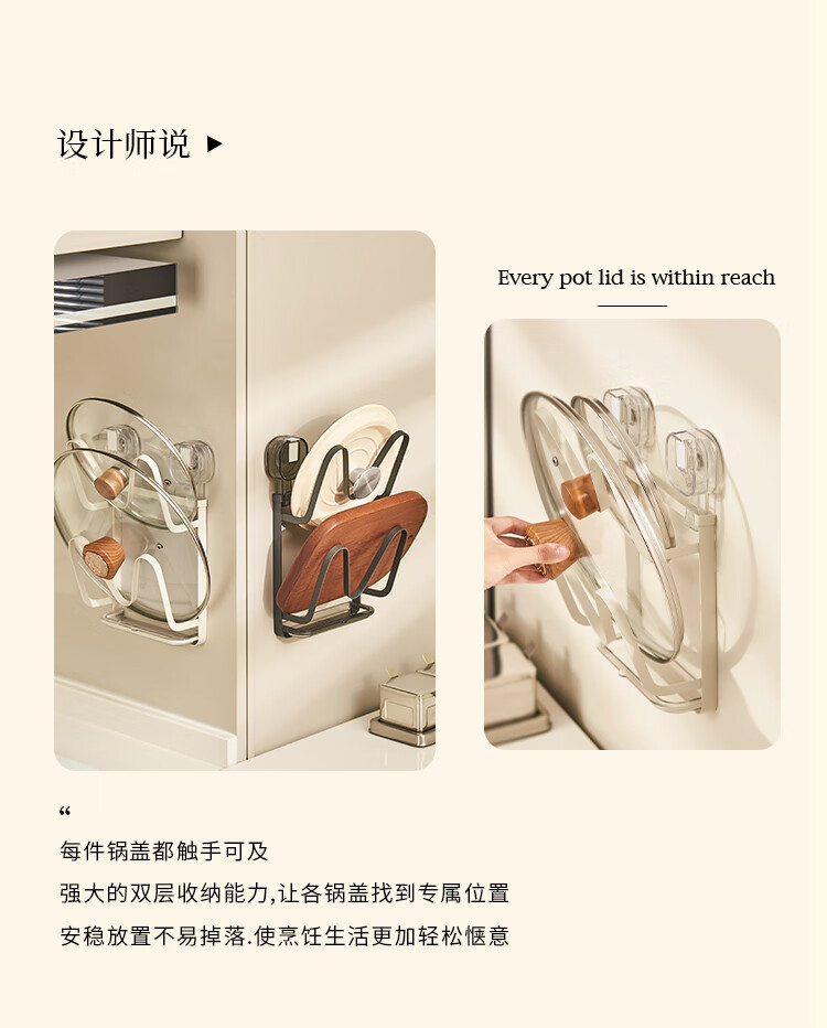 • 商品名称:诺室吸盘铁艺锅盖架子免打孔锅盖放置器壁挂式厨房置物架多功能菜板架 J242092113820/个