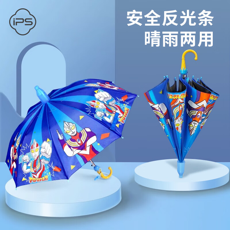 商品名称: 葆氏儿童雨伞男童遮阳伞幼儿园学生反光条长直柄卡通黑胶伞晴雨伞蓝色 儿童雨伞/把