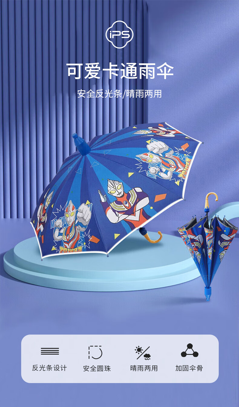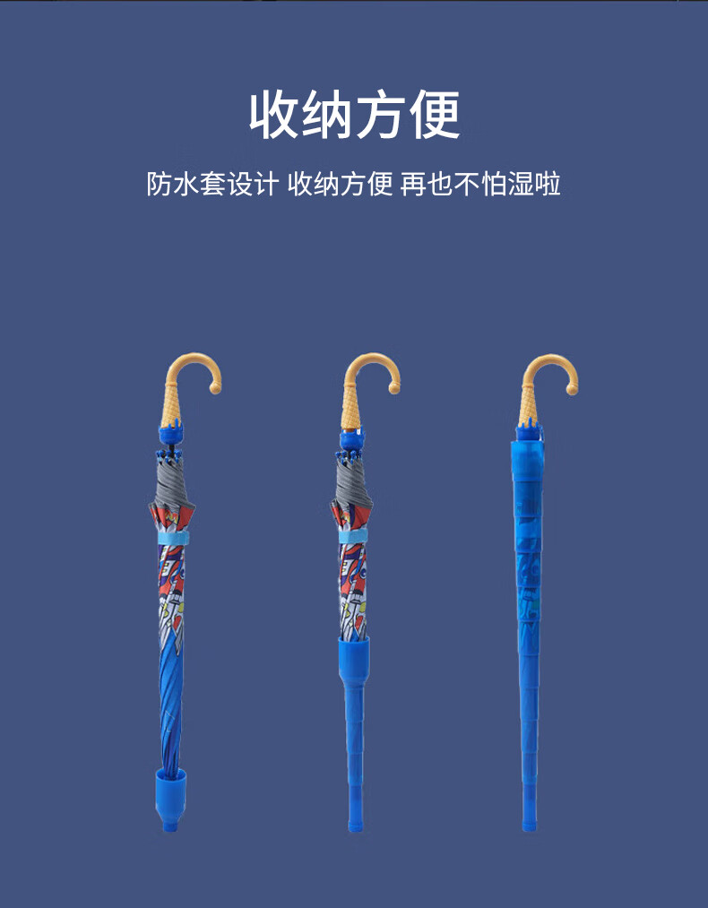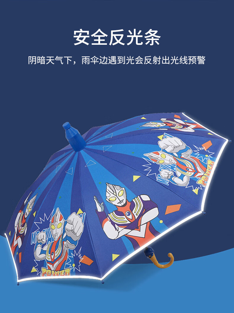 • 商品名称:葆氏儿童雨伞男童遮阳伞幼儿园学生反光条长直柄卡通黑胶伞晴雨伞蓝色 儿童雨伞/把