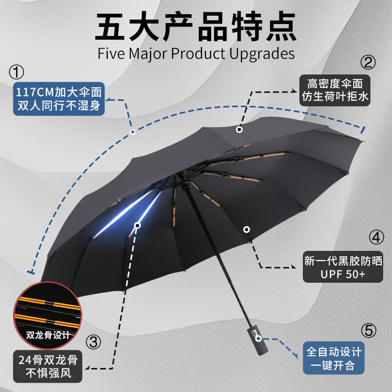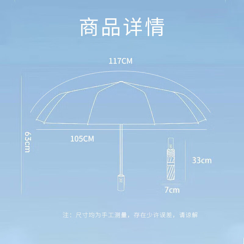 商品名称: 米波迪(Meebordi)雨伞全自动三折叠遮阳太阳伞小雨伞24 骨晴雨两用学生上学专用 003/把