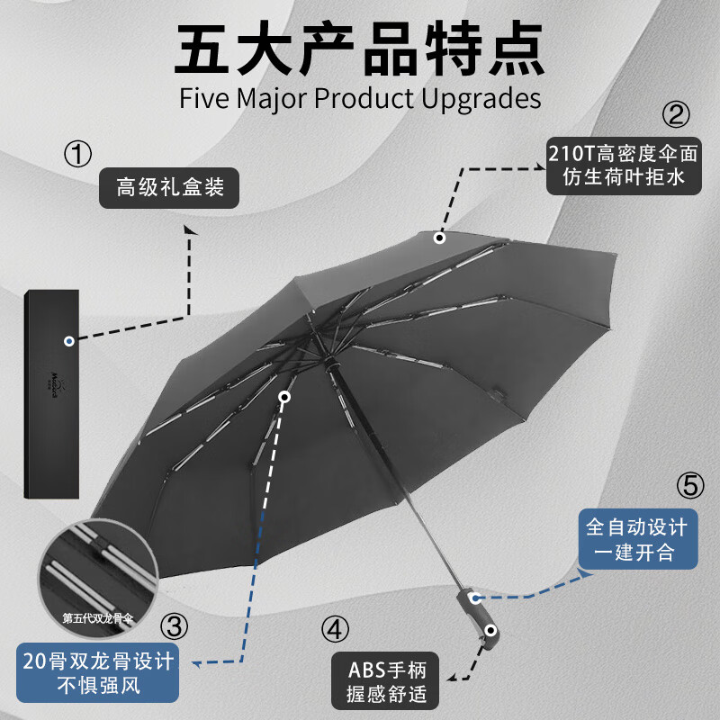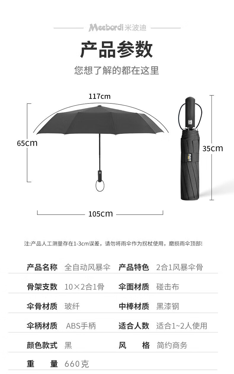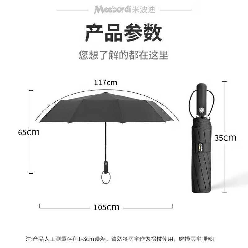 • 商品名称:米波迪(Meebordi)雨伞全自动大号遮阳伞三折叠便携高端礼盒伞商务折叠风暴伞定制 DC-022/把