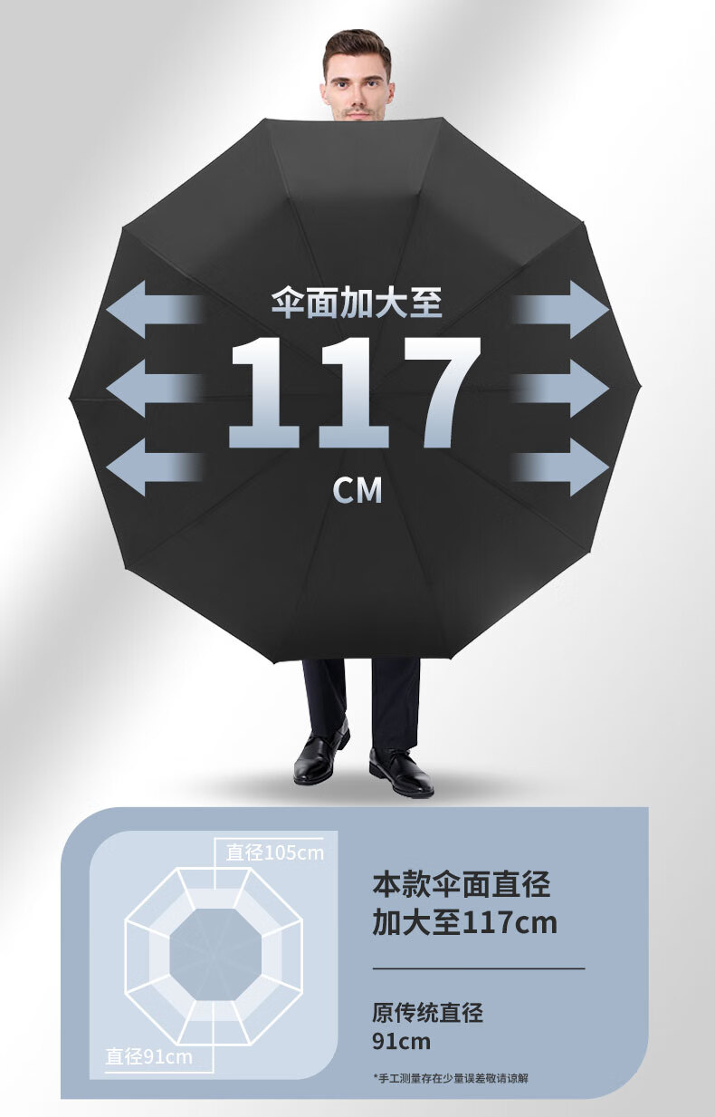 商品名称: 米波迪(Meebordi)雨伞全自动大号遮阳伞三折叠便携高端礼盒伞商务折叠风暴伞定制 DC-022/把
