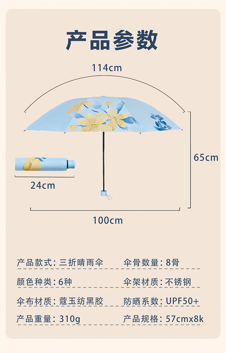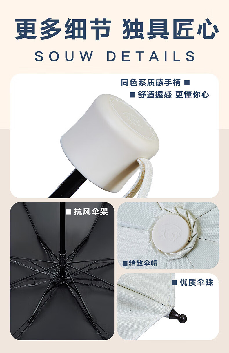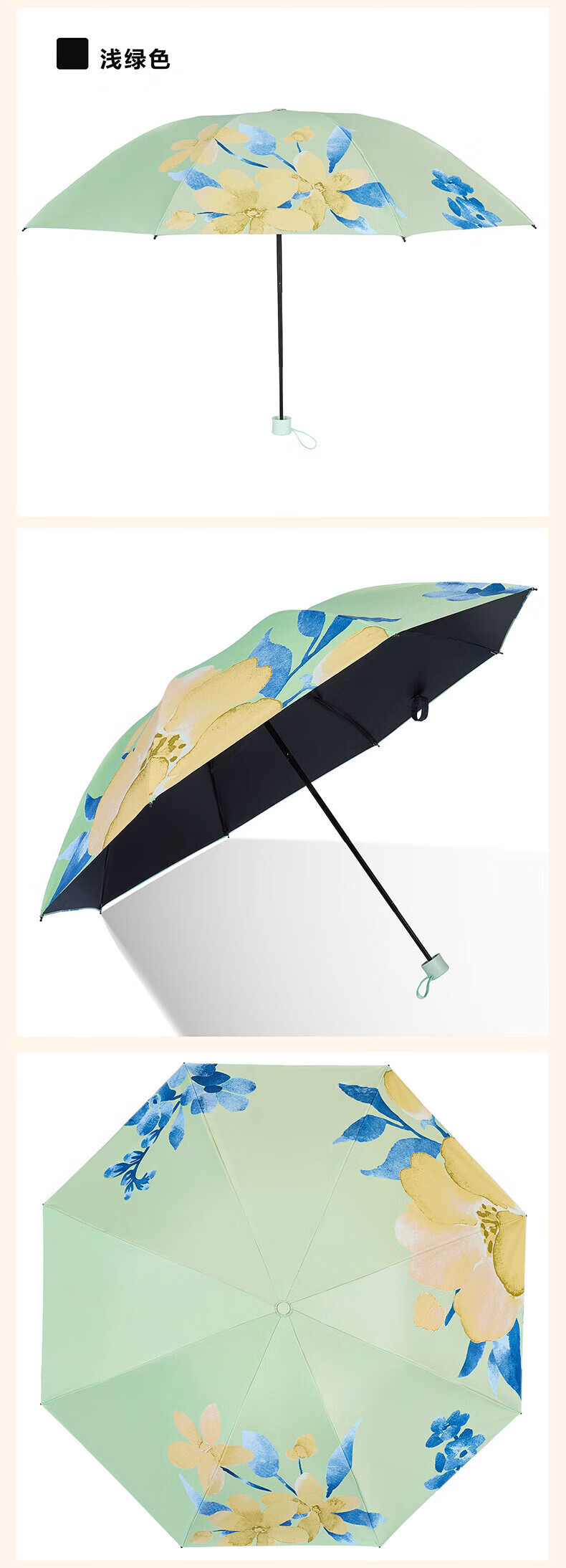 • 商品名称:天堂伞33902E晴雨两用便捷小清新太阳伞女士黑胶防晒学生遮阳伞 浅绿色 1/个