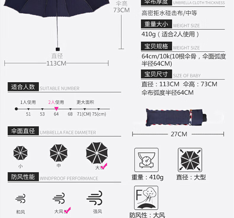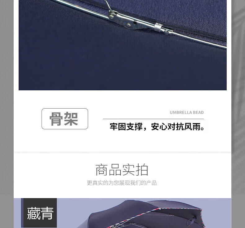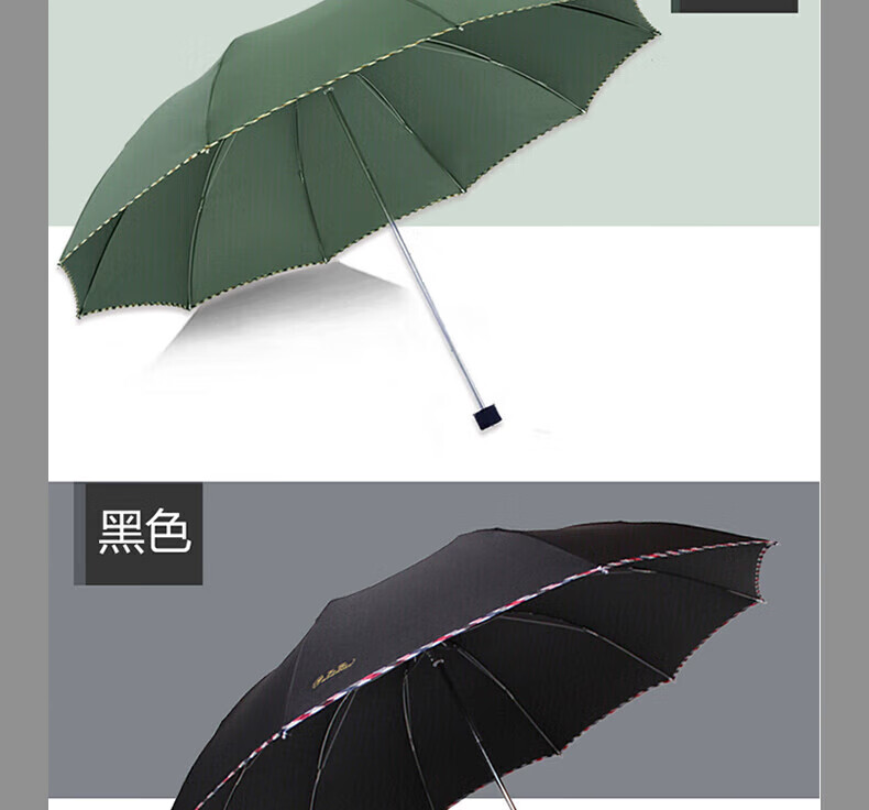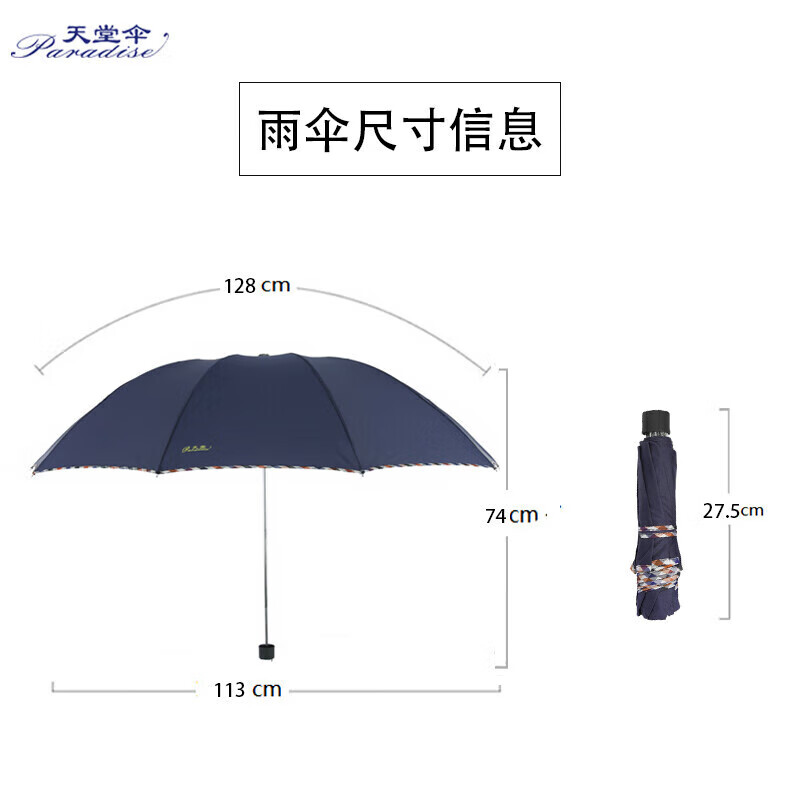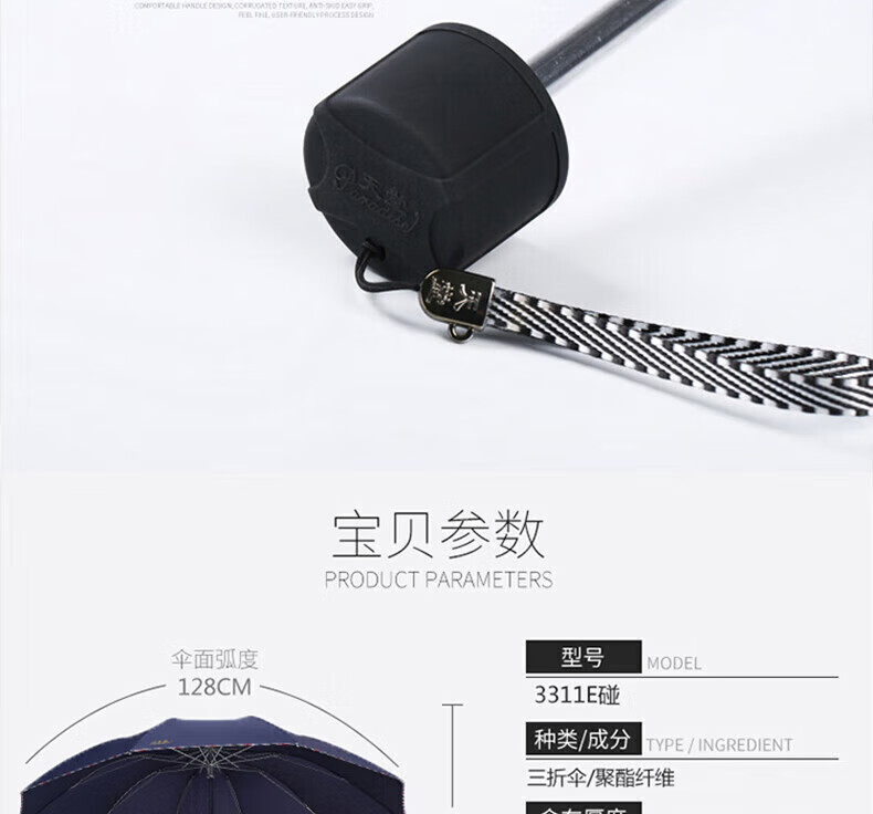 包装清单: 天堂伞 加大加固64cm*10骨三折 晴雨伞 商务伞 广告伞 颜色随机 3311E碰*1
