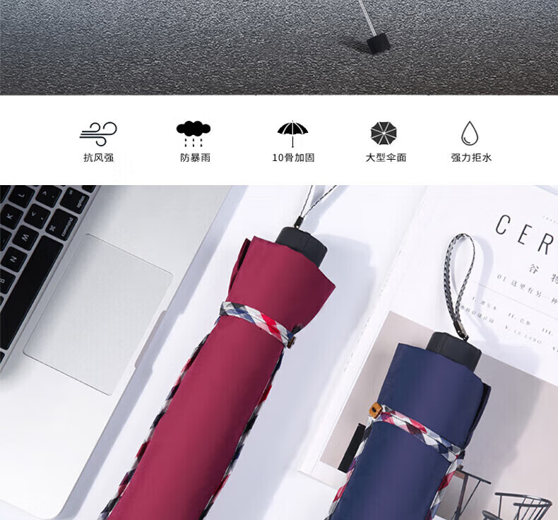 • 商品名称:天堂伞加大加固64cm*10骨三折晴雨伞广告伞可定制logo 颜色随机3311E碰 3311E碰/把