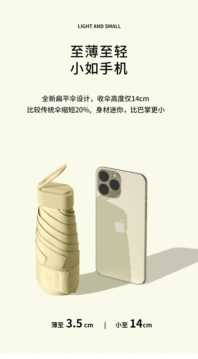 商品名称: 美度(MAYDU)五折卡片伞防晒防紫外线遮阳伞 M6113奶油黄 M6113/把