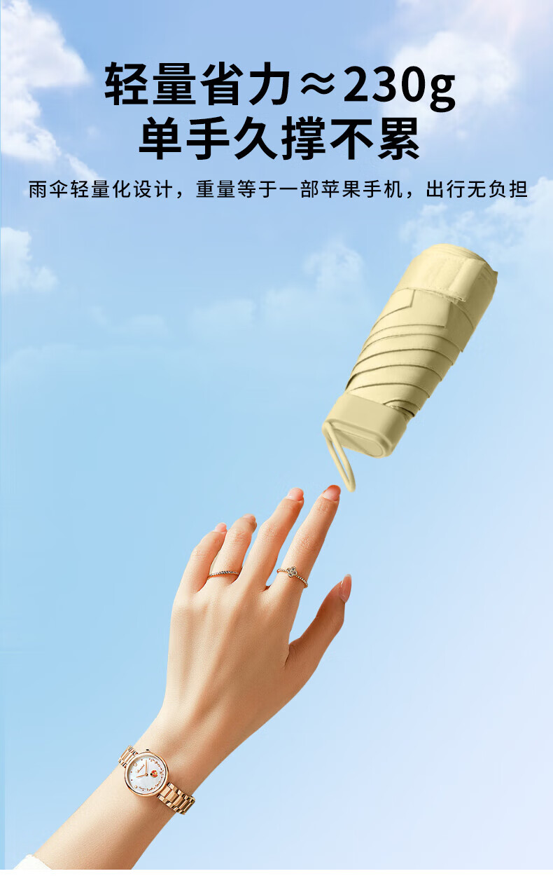 • 商品名称:美度(MAYDU)五折卡片伞防晒防紫外线遮阳伞 M6113奶油黄 M6113/把