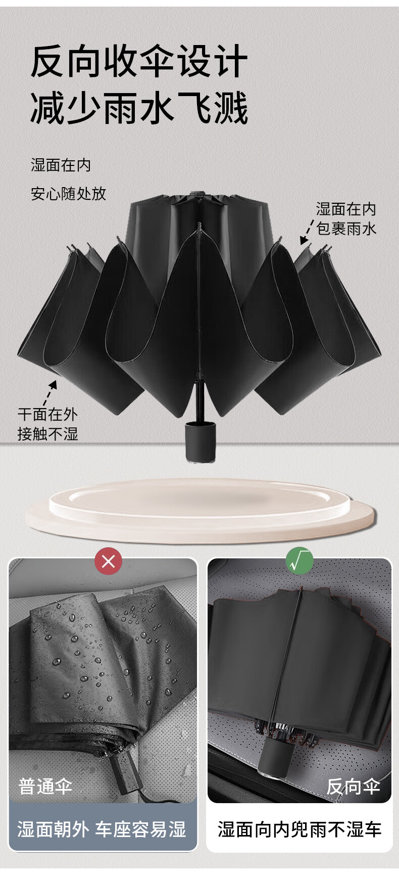 米波迪(Meebordi)雨伞加固加厚结实抗风折叠伞晴雨两用三折叠超大反向雨伞防暴雨 DC-023/把