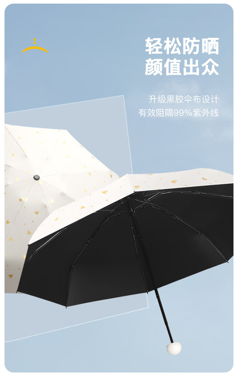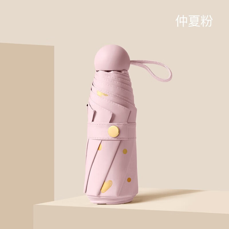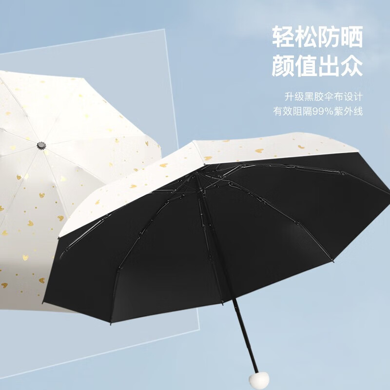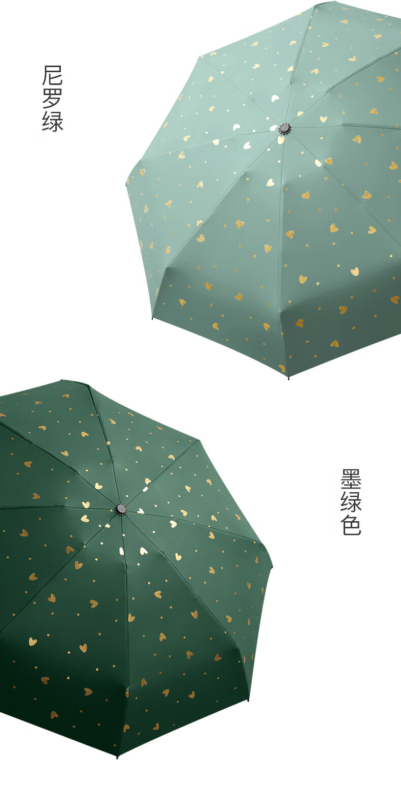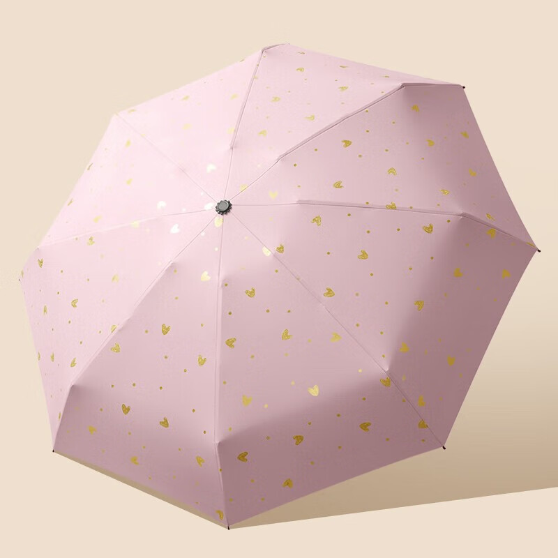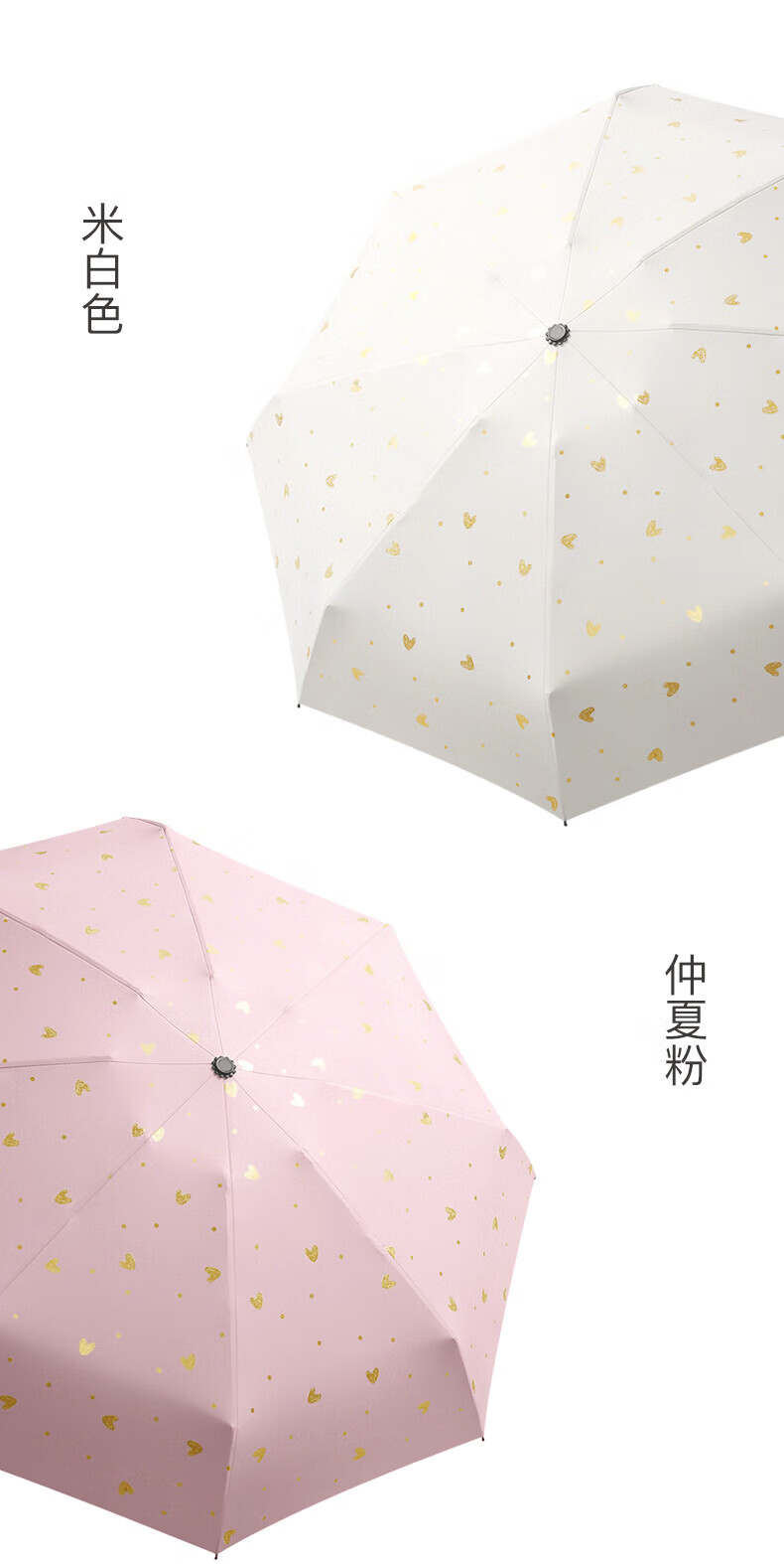 • 商品名称:美度(MAYDU)烫金爱心防晒防紫外线黑胶五折8骨遮阳伞 M5525仲夏粉 M5525/把