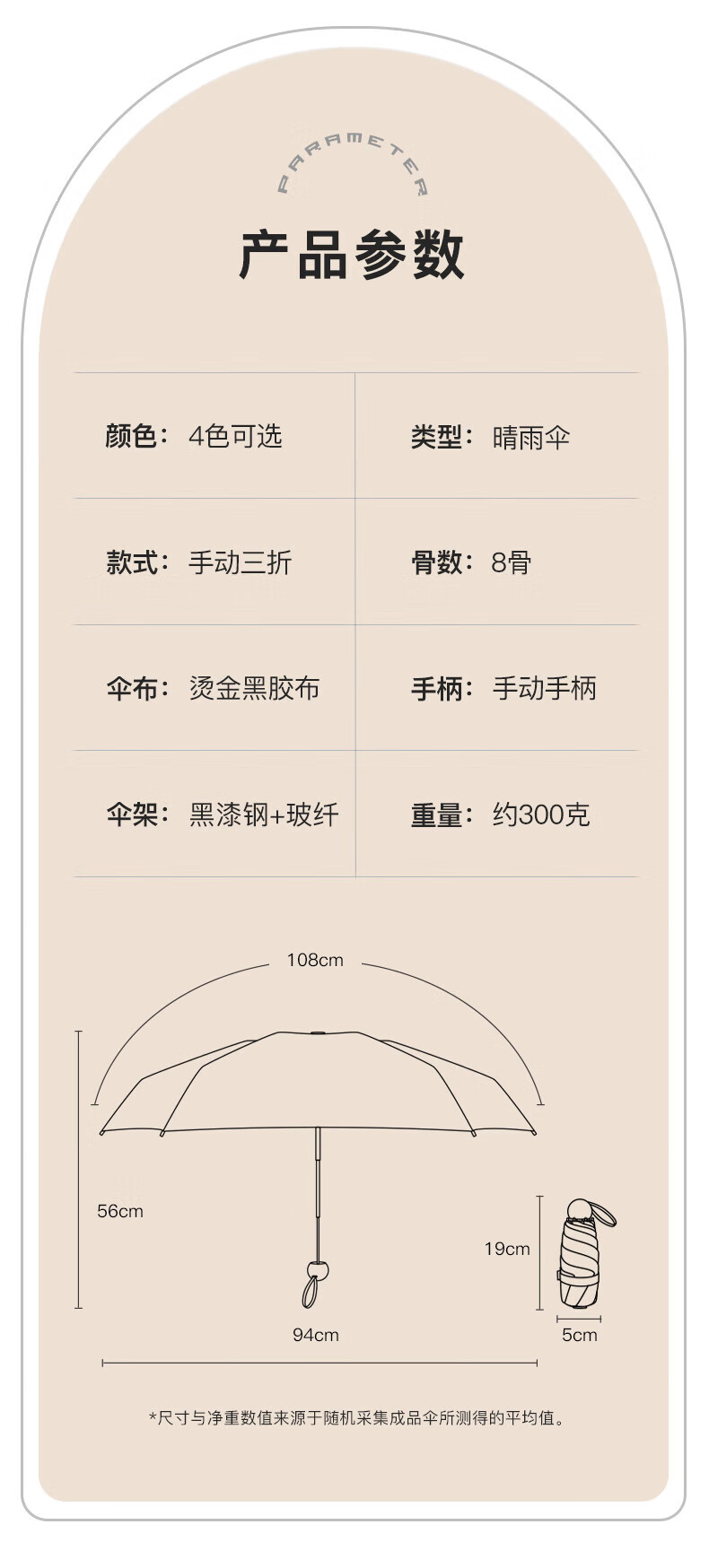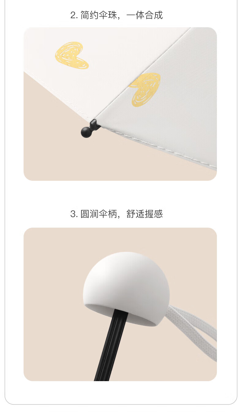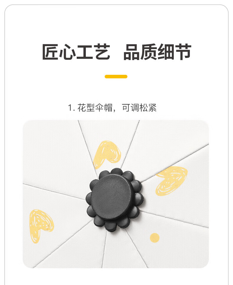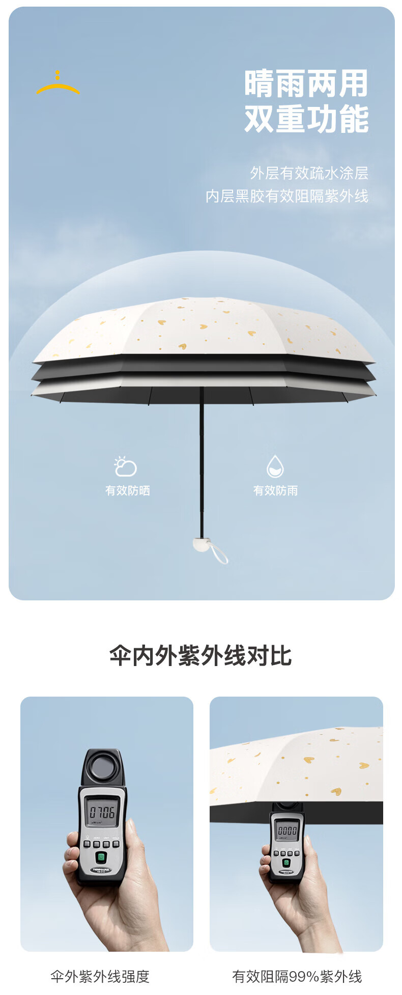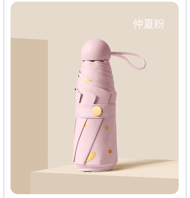 • 商品名称:美度(MAYDU)烫金爱心防晒防紫外线黑胶五折8骨遮阳伞 M5525仲夏粉 M5525/把