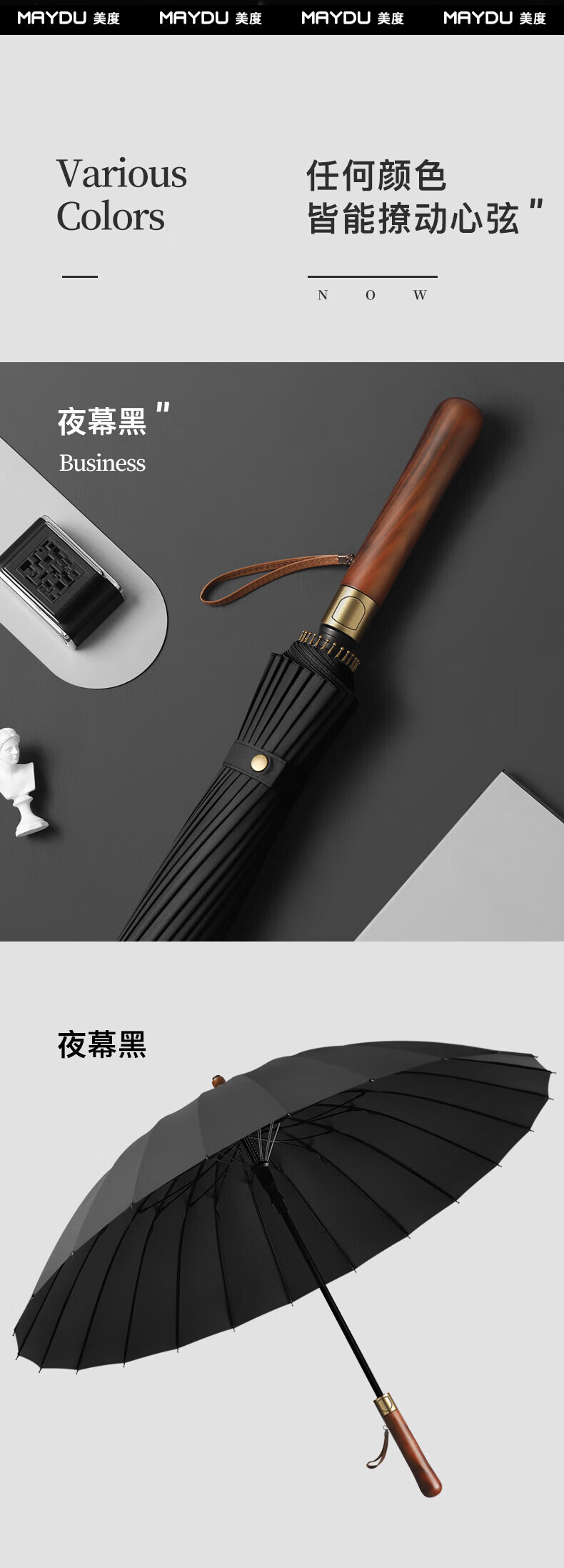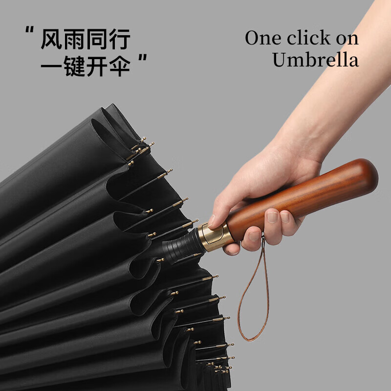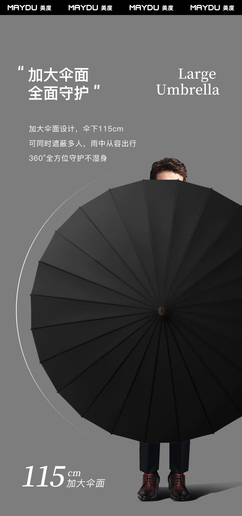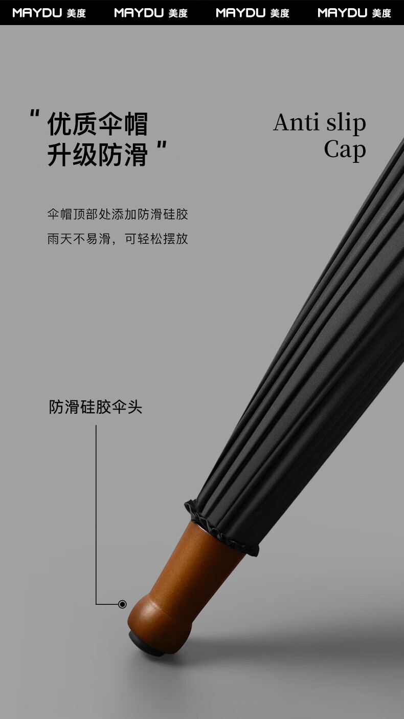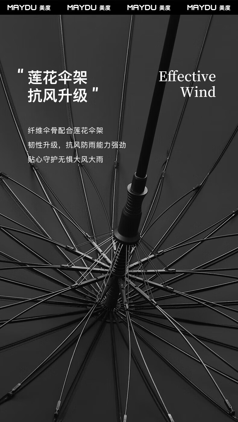 • 商品名称:美度(MAYDU)全自动24骨商务雨伞实木长柄加大防风晴雨双人伞 M8005夜幕黑 M8005/把