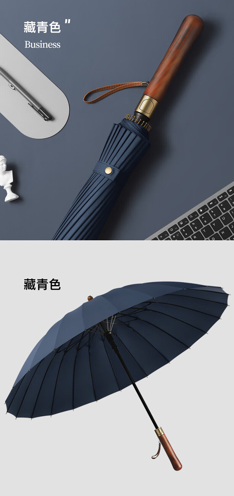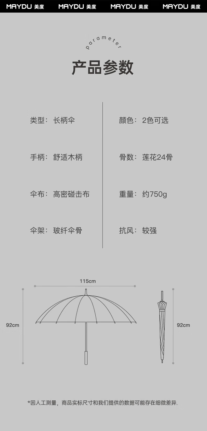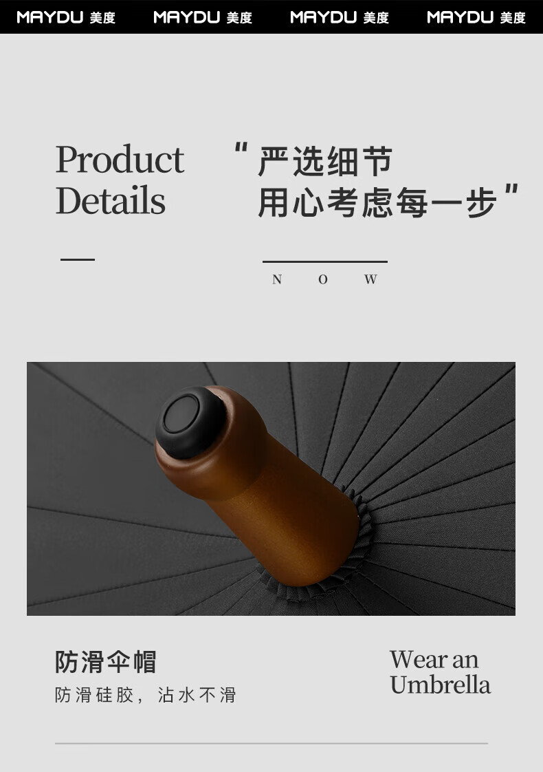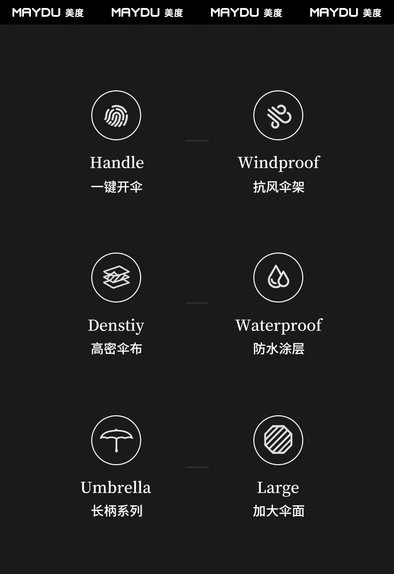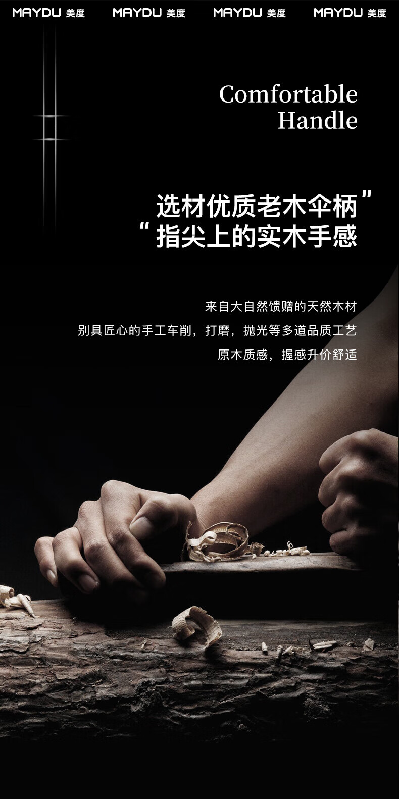 • 商品名称:美度(MAYDU)全自动24骨商务雨伞实木长柄加大防风晴雨双人伞 M8005夜幕黑 M8005/把