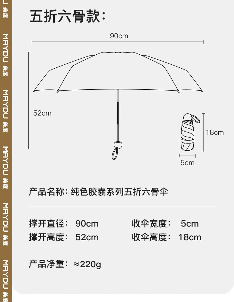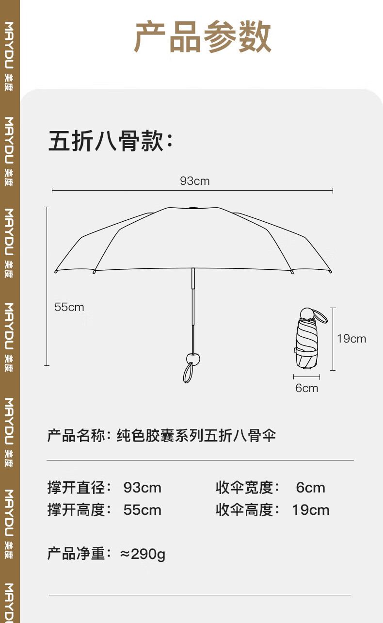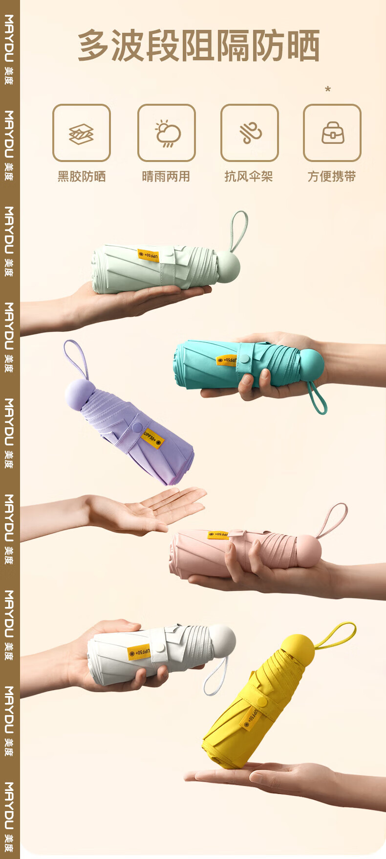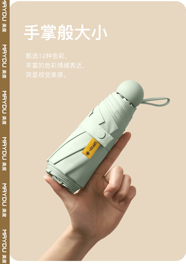 • 商品名称:美度(MAYDU)五折迷你伞太阳伞防晒防紫外线伞 M5201橘红色 M5201/把